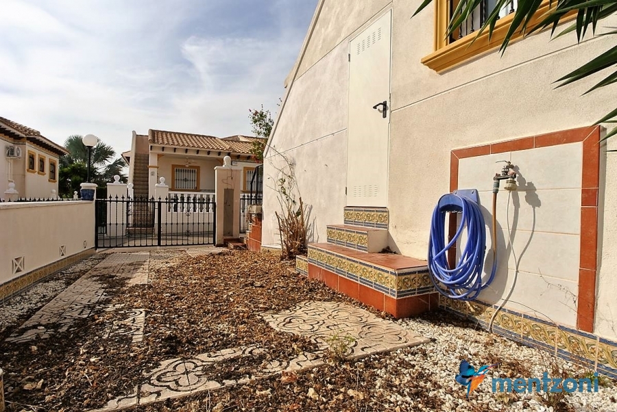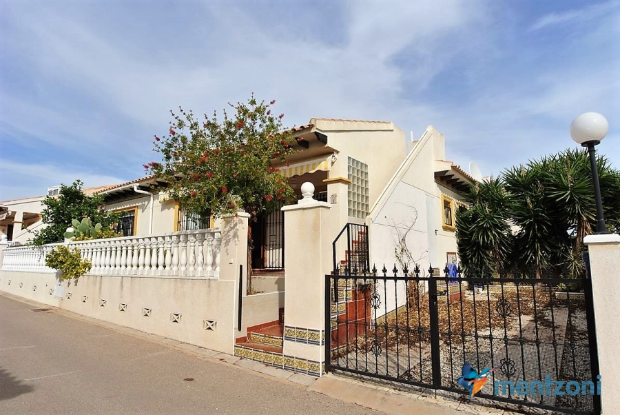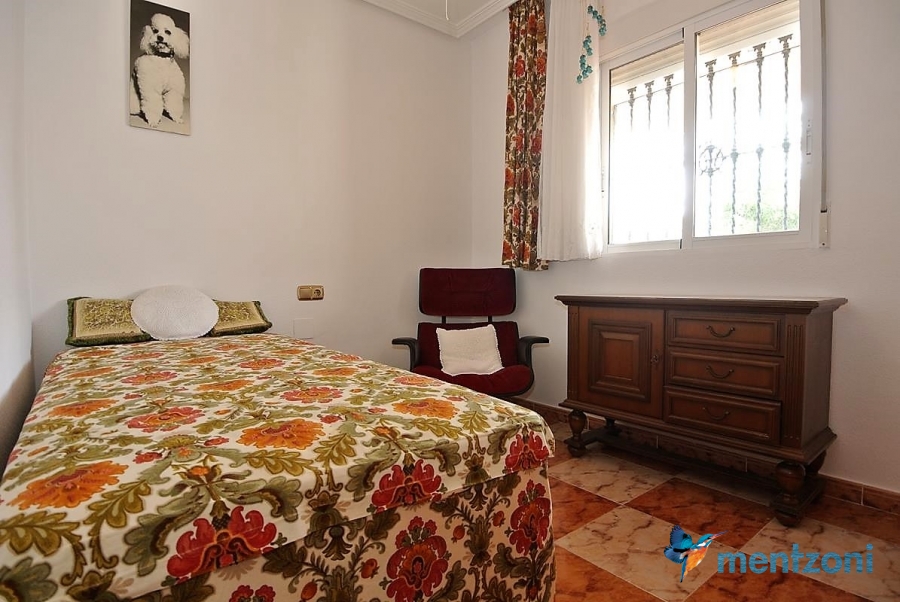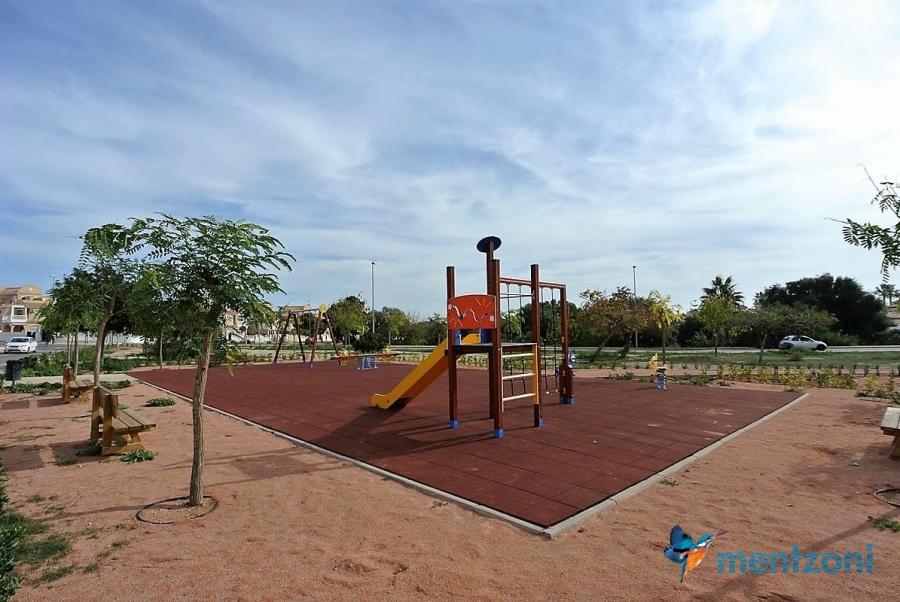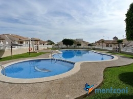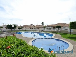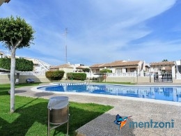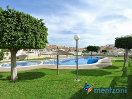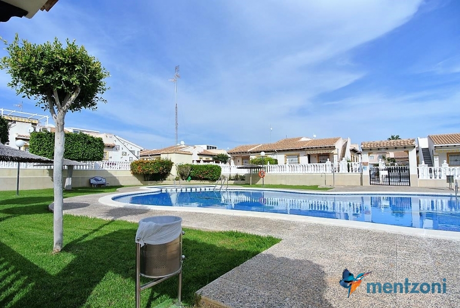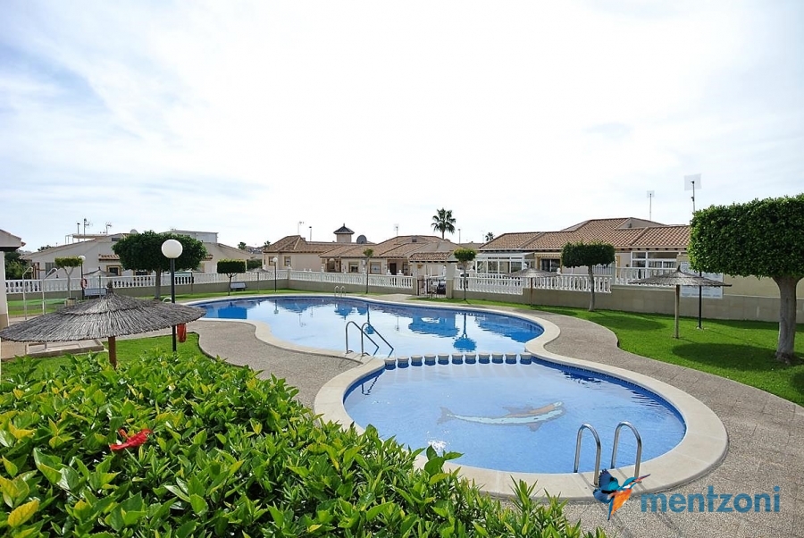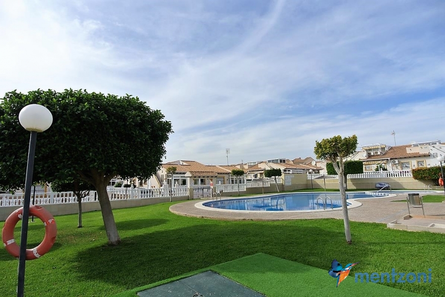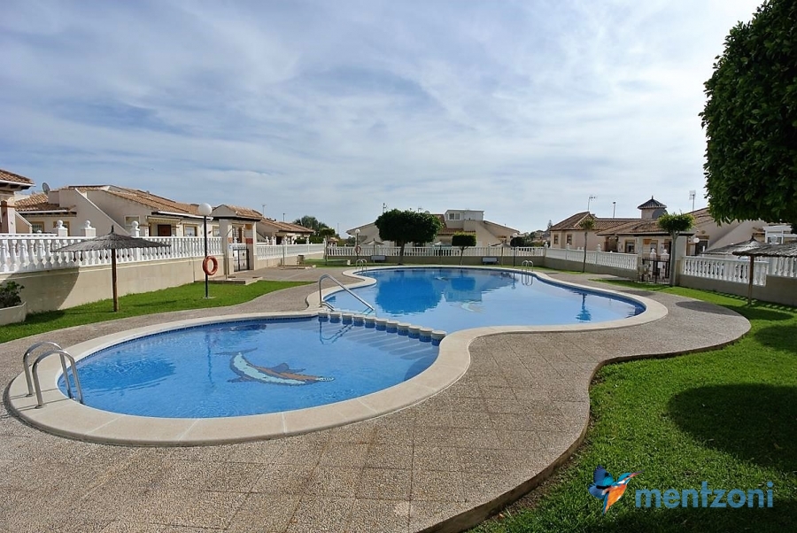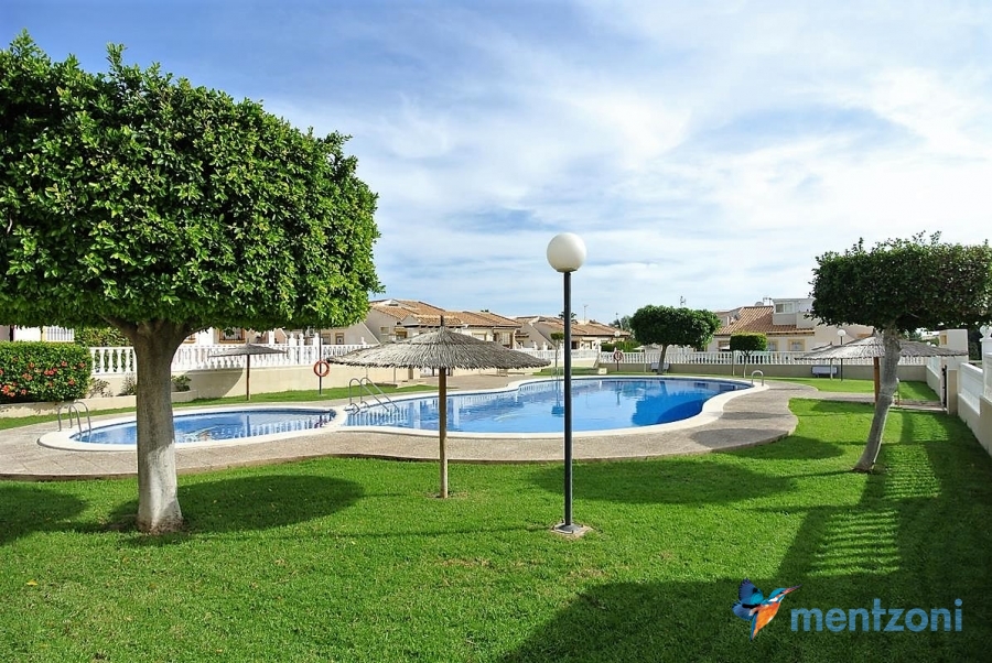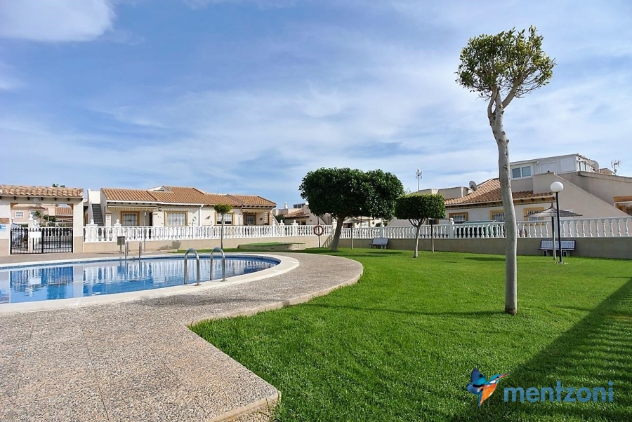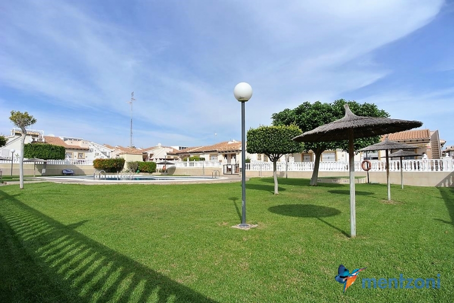 Vivienda en planta baja de 2 habitaciones, amplio salón, cocina, galería lavadero, baño, porche techado, jardín en esquina con entrada para aparcar el coche y solárium privado con 2 amplios trasteros. Propiedad en muy buen estado, Residencial con bonita y amplia piscina comunitaria, rodeado de zonas verdes, ubicado a 1 km de la playa de Cabo Roig.