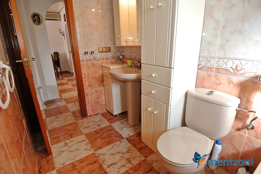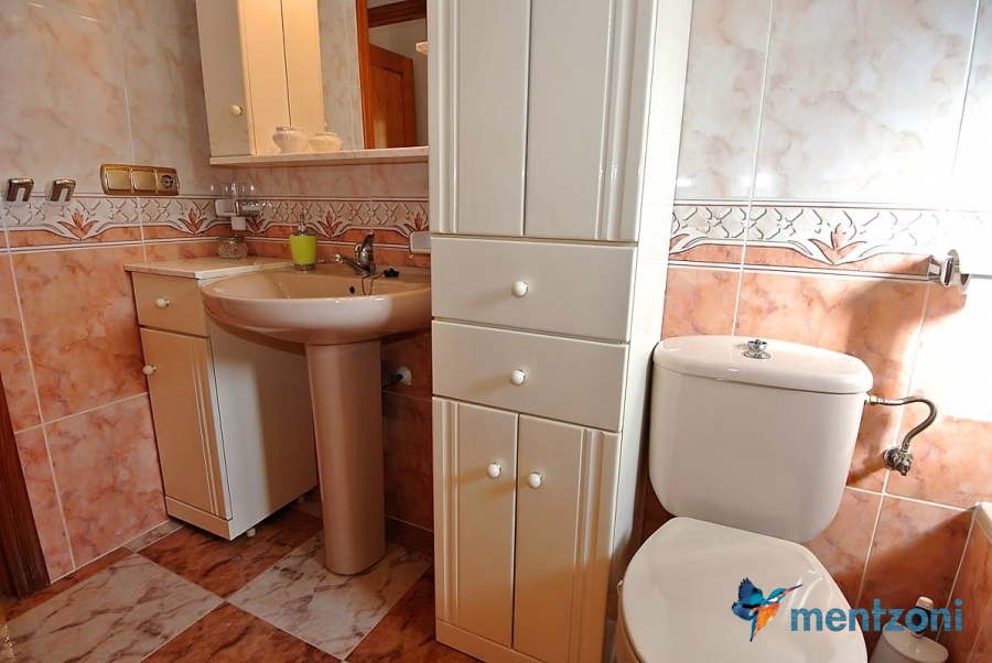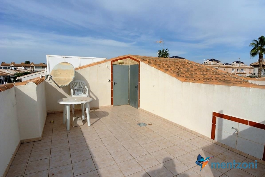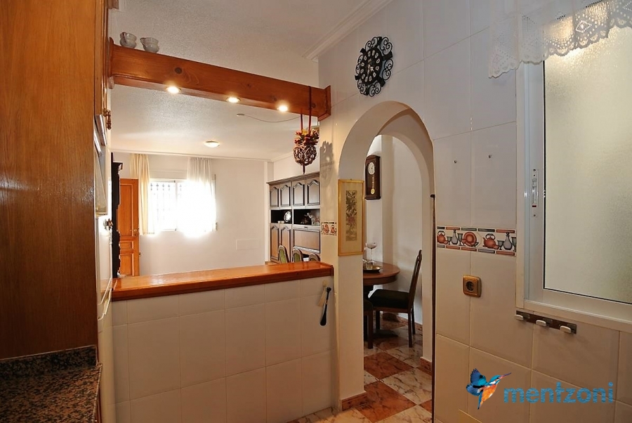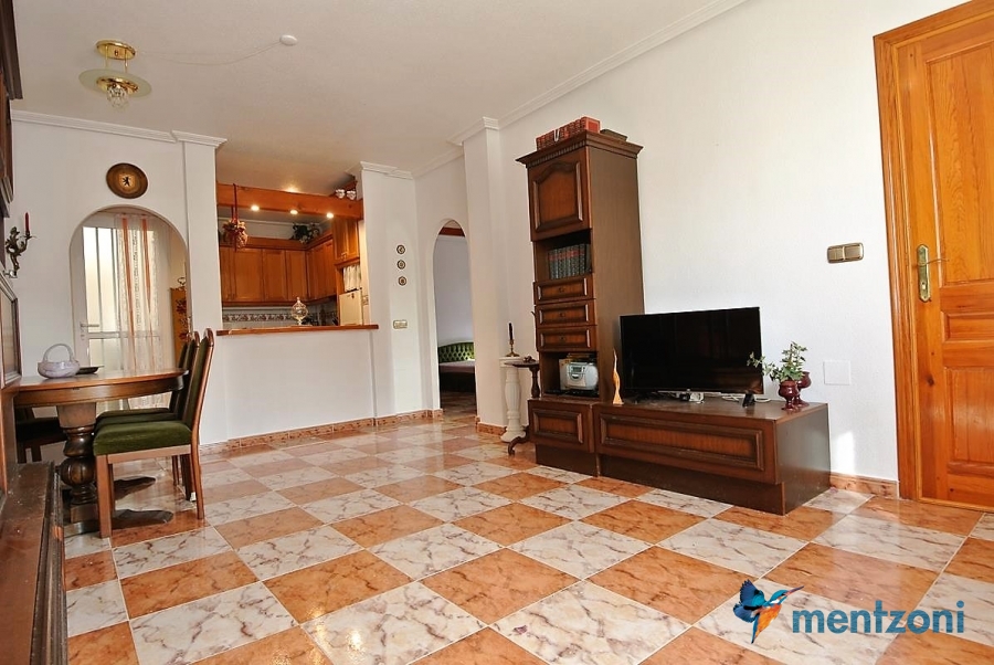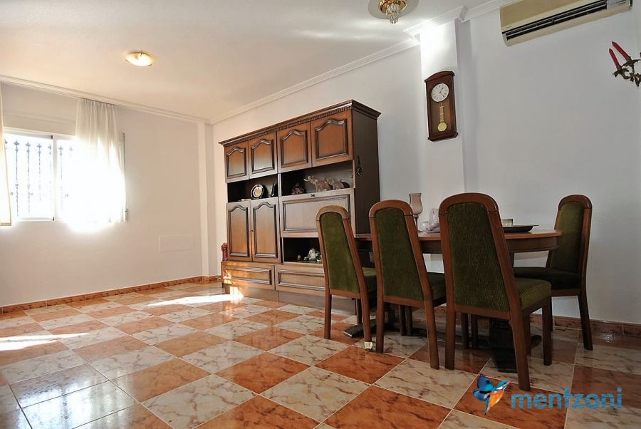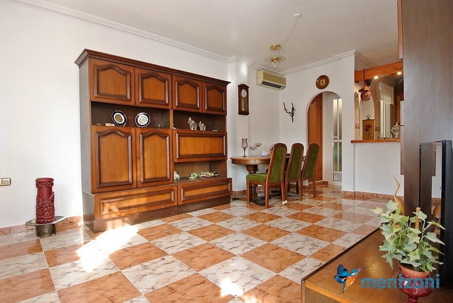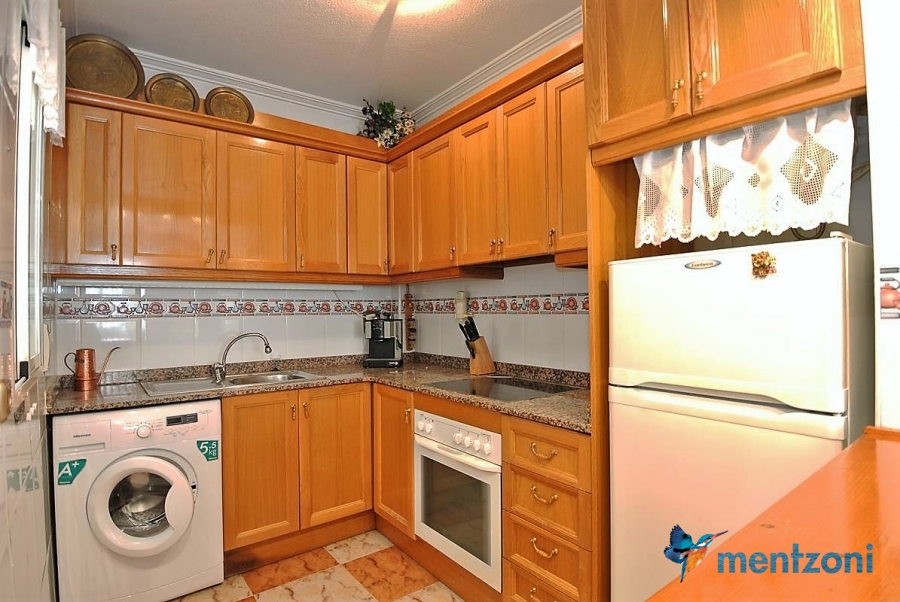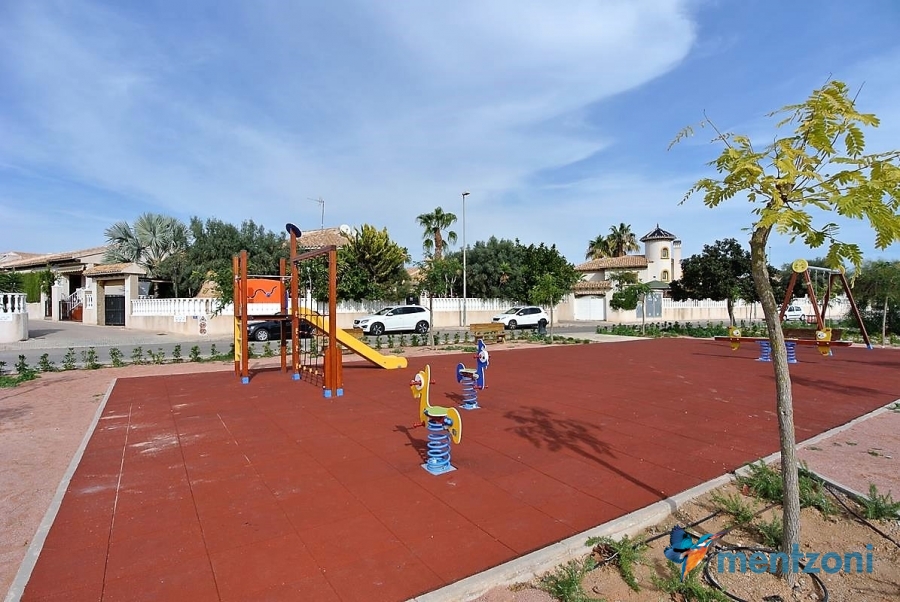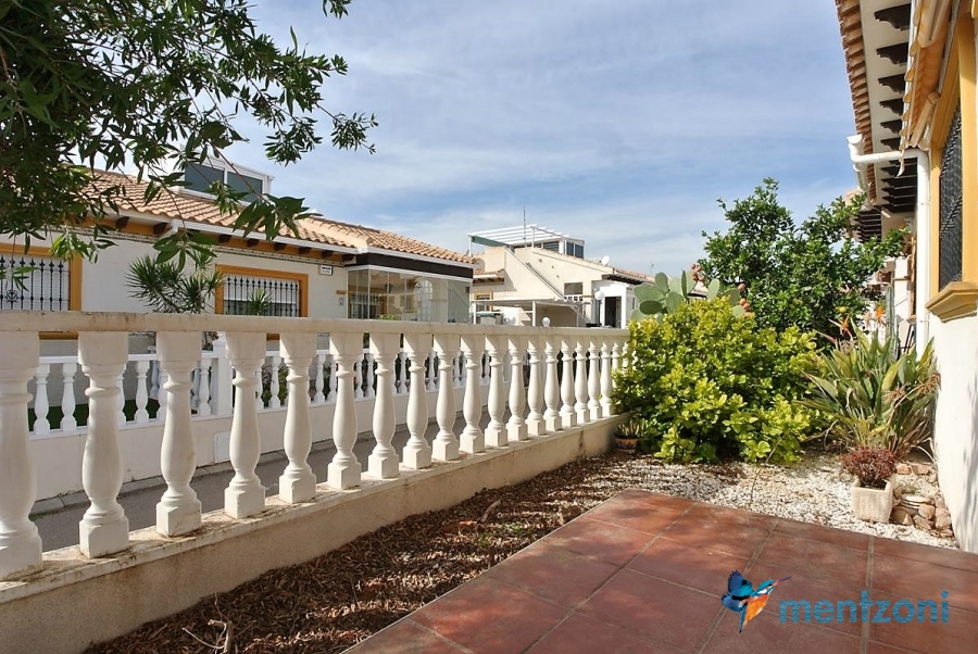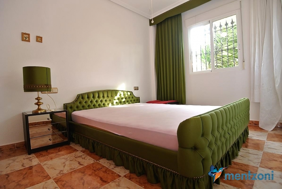 Vivienda en planta baja de 2 habitaciones, amplio salón, cocina, galería lavadero, baño, porche techado, jardín en esquina con entrada para aparcar el coche y solárium privado con 2 amplios trasteros. Propiedad en muy buen estado, Residencial con bonita y amplia piscina comunitaria, rodeado de zonas verdes, ubicado a 1 km de la playa de Cabo Roig.