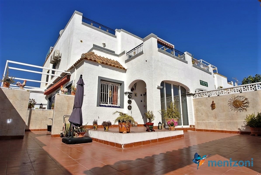 Excepcional chalet en esquina, con mucho mucho sol, jardín con entrada para el coche, porche techado, amplio salón, cocina independiente con salida directa al jardín, 3 habitaciones con armarios empotrados, 2 baños, terraza en la habitación principal y amplio solárium privado, todo en magnificas condiciones. Residencial con hermosa piscina comunitaria, servicios y a las playas en 5 minutos.