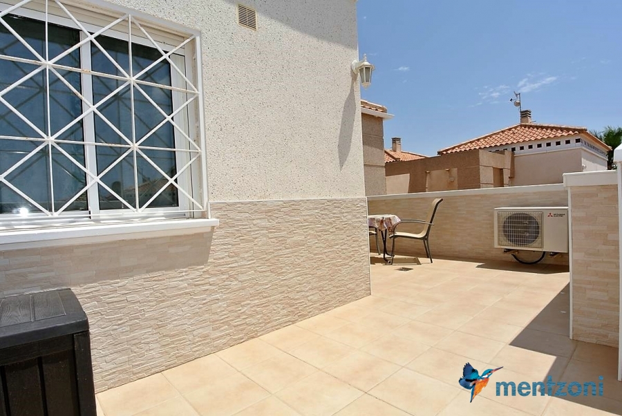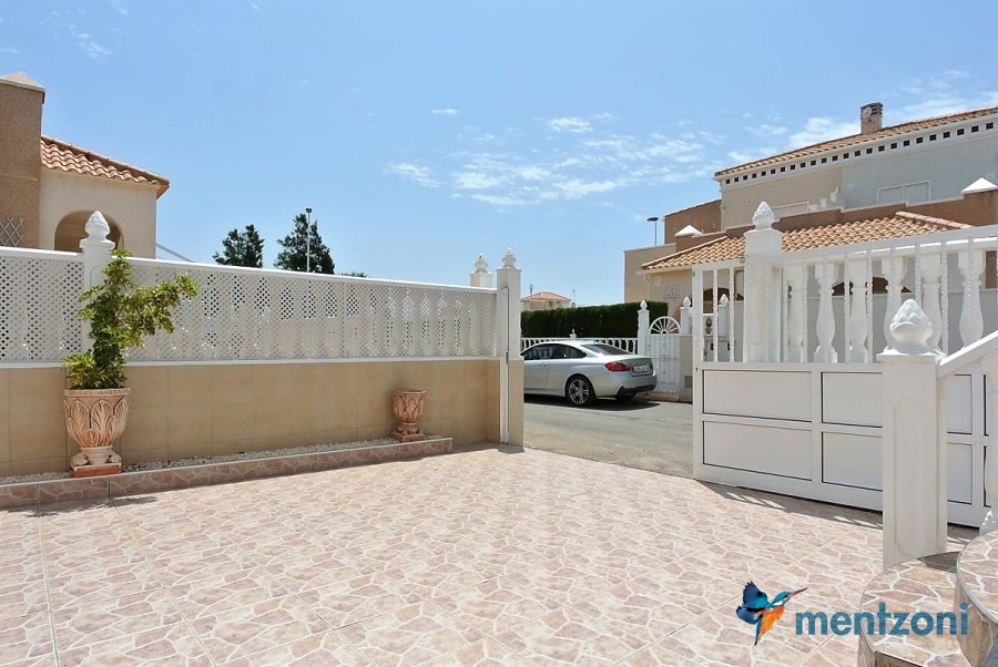 Excepcional chalet adosado en esquina, con 3 habitaciones, amplio salón, cocina independiente con galería y lavadero, 2 baños, porche techado al jardín, terraza solárium y el hermoso jardín en esquina con entrada para el coche. Excelente estado. Residencial Altos de la Bahía cerrado y privado, con gran piscina comunitaria.