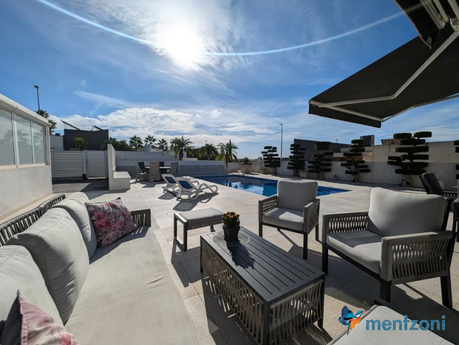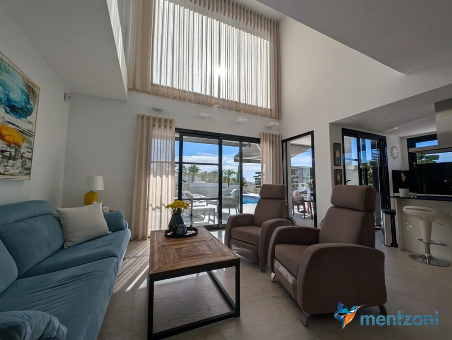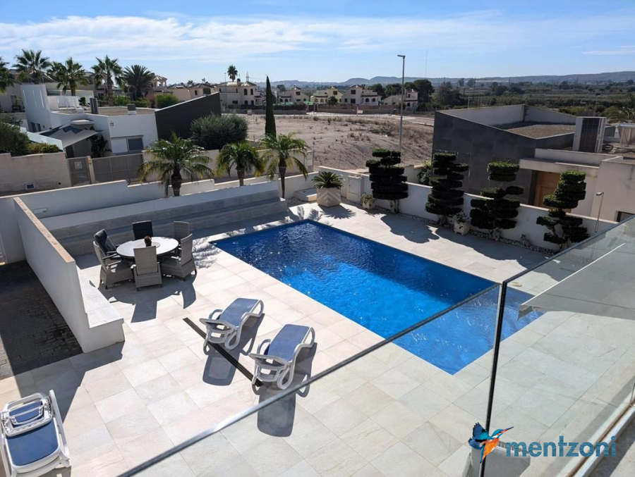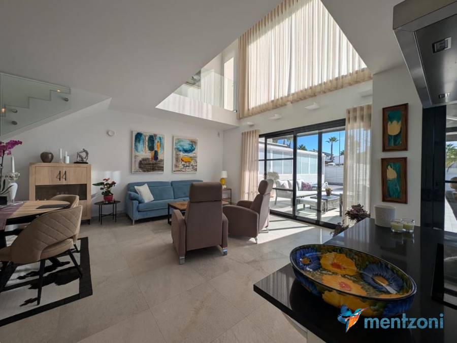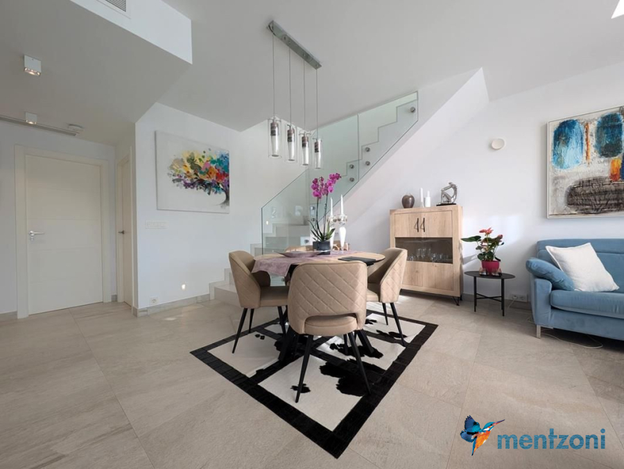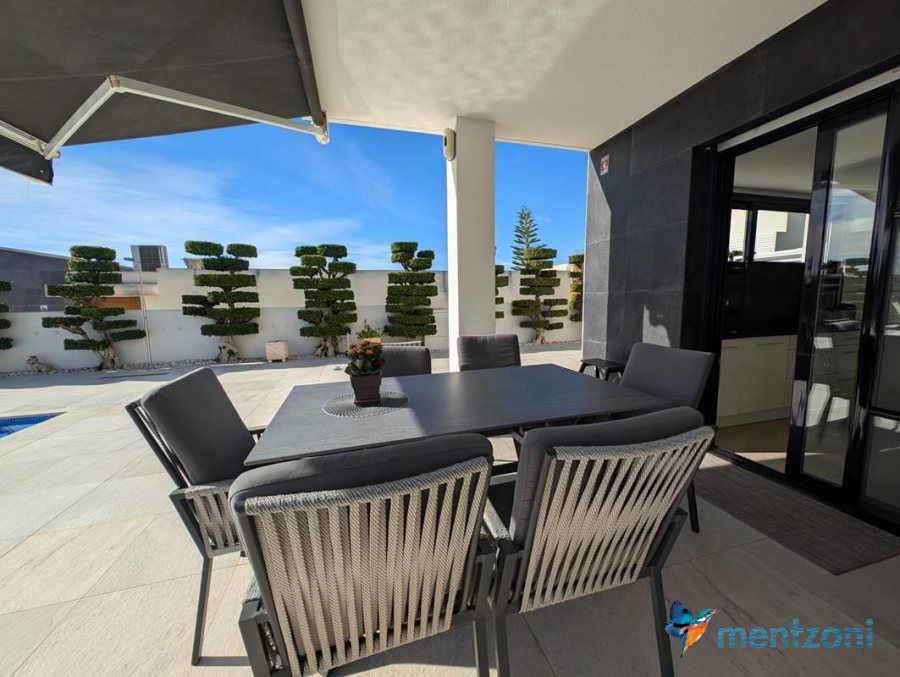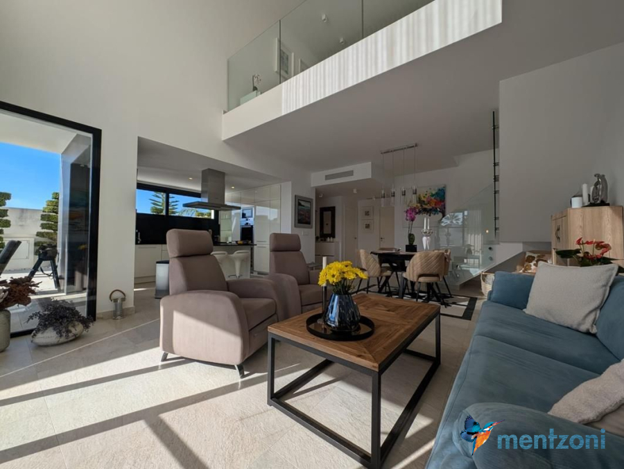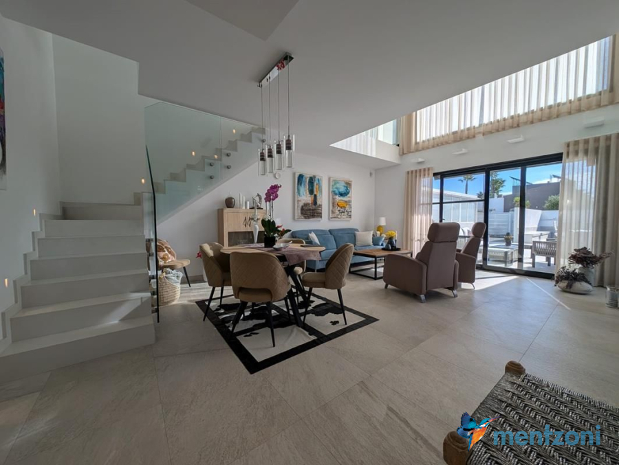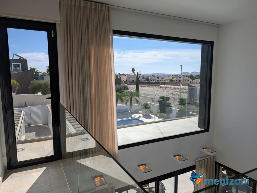 Consta de 2 plantas, en planta baja amplio salón comedor, cocina con isla, toda la planta con grandes ventanas que acceden al exterior, lavandería, dormitorio y baño, en la primera planta por escalera accedemos a una acogedora sala de lectura y TV, 2 dormitorios, baño y uno de ellos en suite con vestidor, en esta planta encontramos una preciosa terraza con vistas despejadas. La vivienda cuenta con varias estancias en el exterior para disfrutar del sol, etc. trastero, la vivienda cuenta con suelo radiante en toda la vivienda y acceso para mas de un coche dentro de la parcela con zona cubierta.