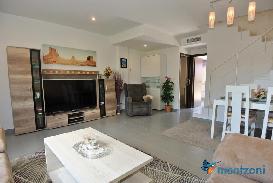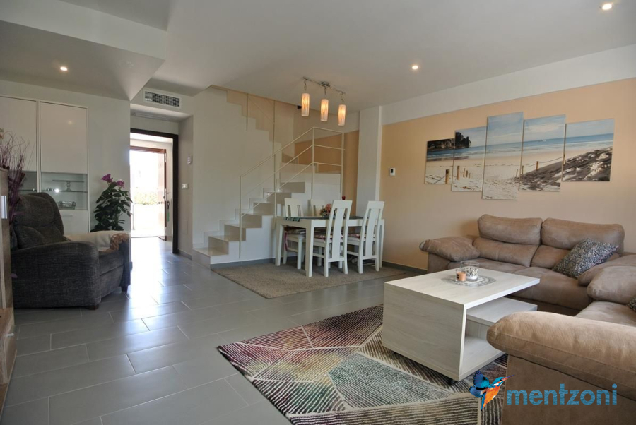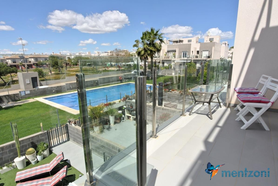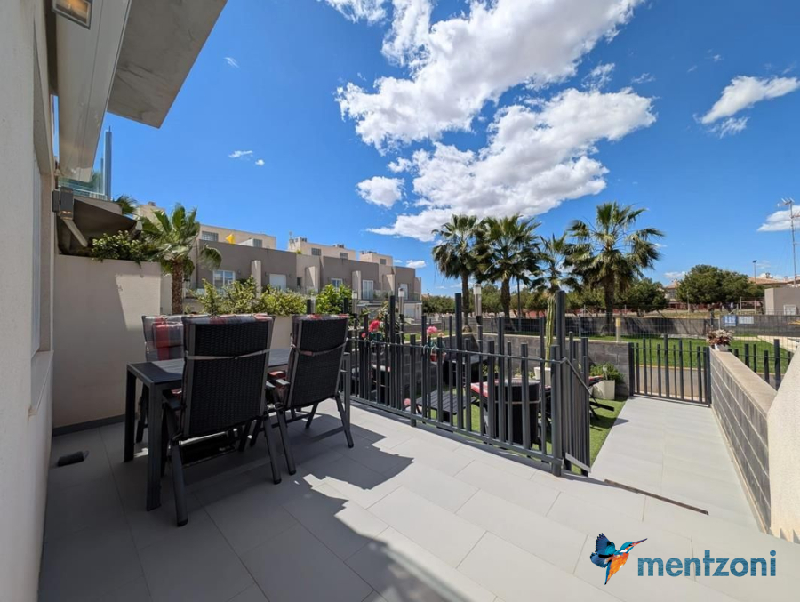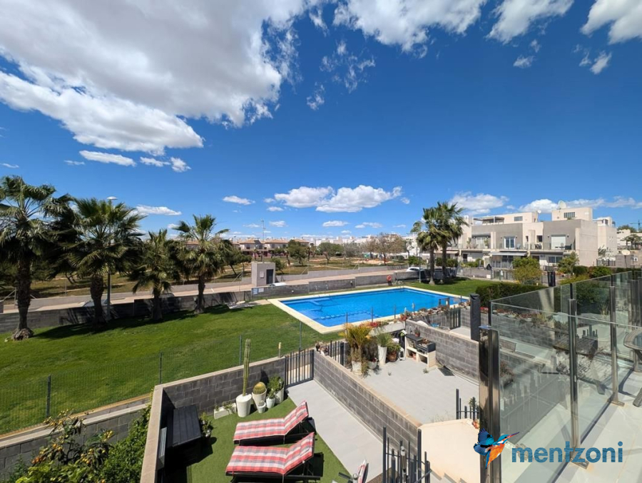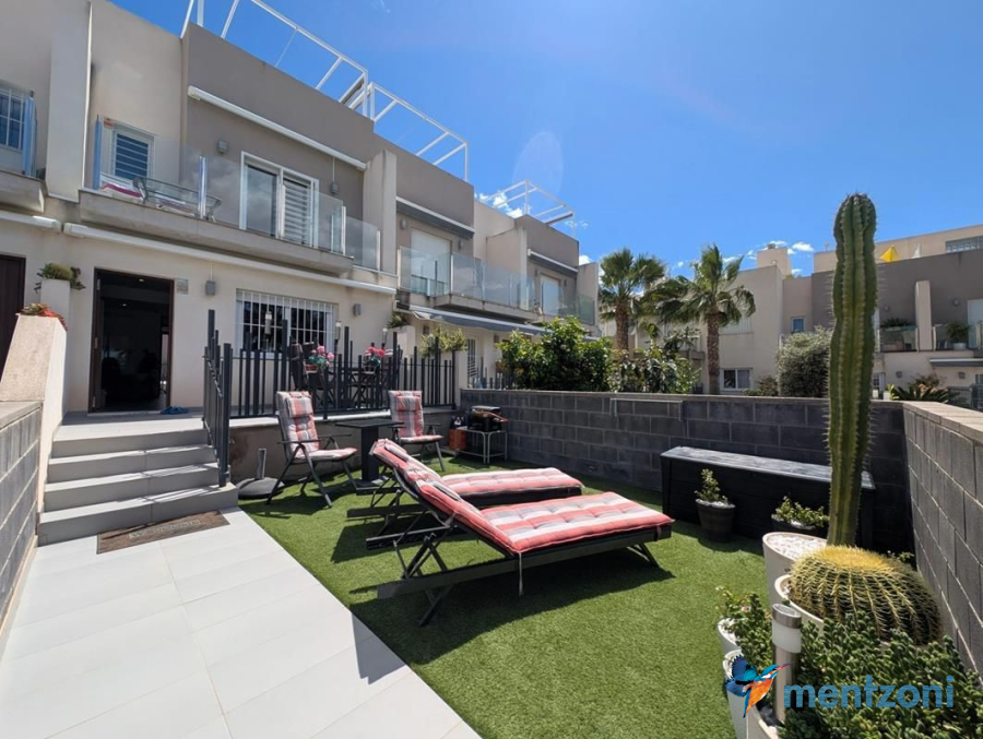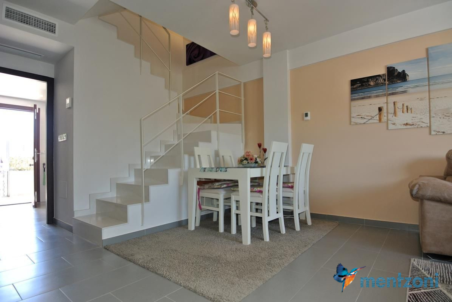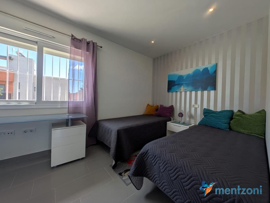 Consta de 2 plantas, en planta baja jardín delantero, cocina independiente, baño, salón comedor con salida a terraza y jardín con acceso directo a zona común de piscina con preciosas areas verdes y plaza de parking privada, en planta primera encontramos 2 dormitorios, uno de ellos en suite y terraza con vistas a las zonas comunes y baño, y en planta segunda espacio de lavandería y gran solárium con ducha. Este precioso dúplex se vende amueblado y equipado, encuentra en el residencial Salinas Beach, en la zona del Sector 25 de Aguas Nuevas en Torrevieja. Próximo a todos los servicios, la playa a 1.8 km y el aeropuerto a 38km.