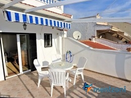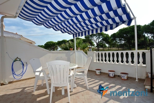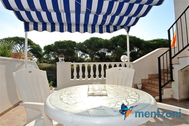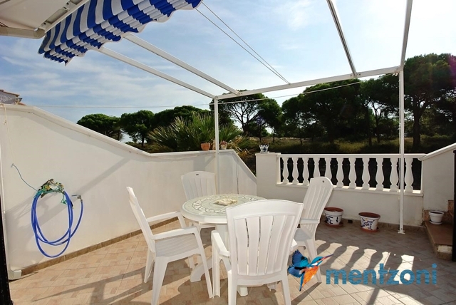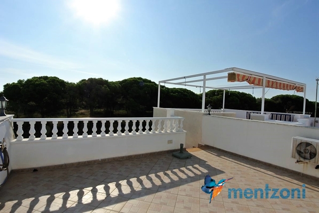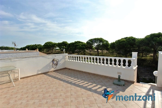 Hermosa casa ubicada en primera linea de la reserva natural de pinos y dunas de Pinomar, vivienda de 2 habitaciones en planta baja y otra en planta alta muy amplia con baño en suite. Ademas en planta baja encontramos la cocina, salón, baño y una galería. Jardín en planta, terraza en la habitación y un gran solarium. Toda la vivienda tiene vistas directas a la pinada y desde el solarium se puede ver la laguna de la Mata y el mar. Muy buen estado y se vende amueblada. La urbanización Pinomar tiene una gran piscina de acceso paga bono diario.