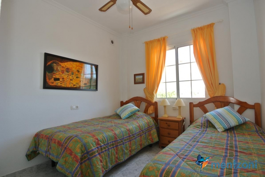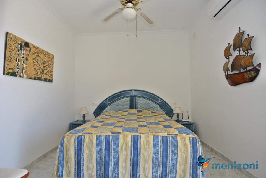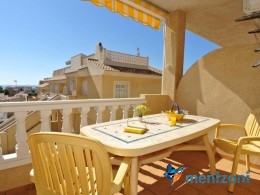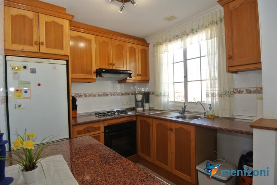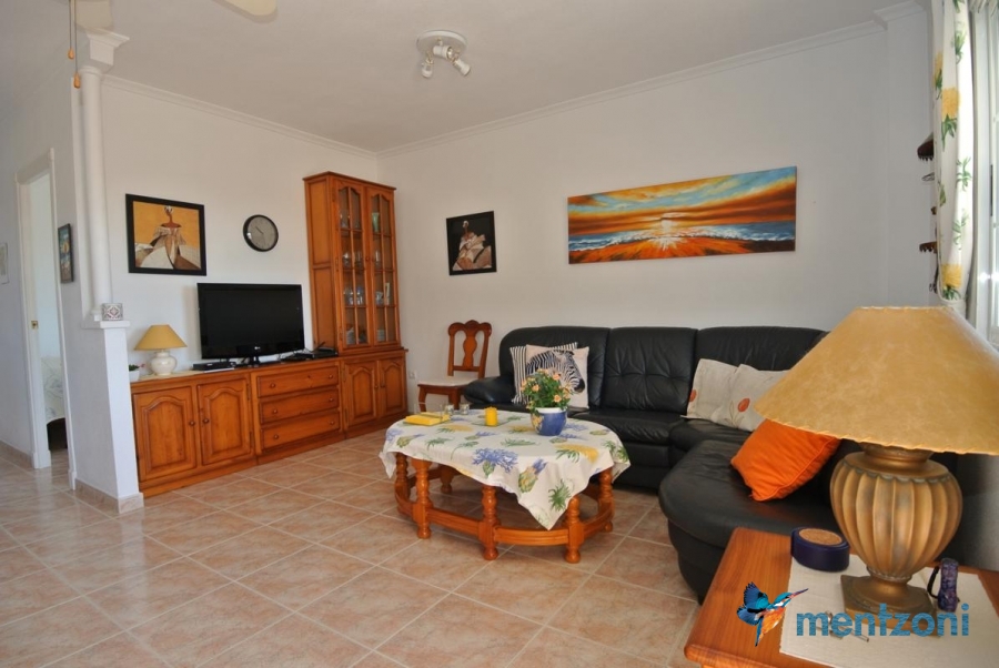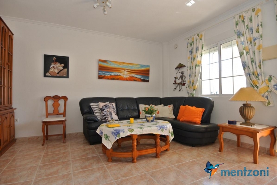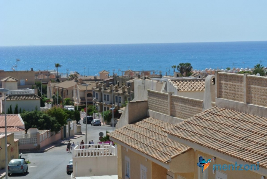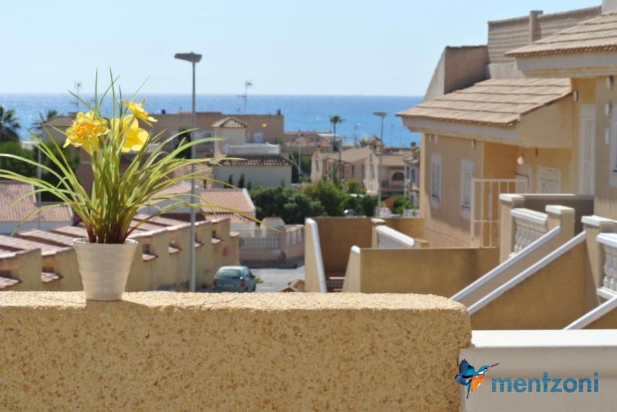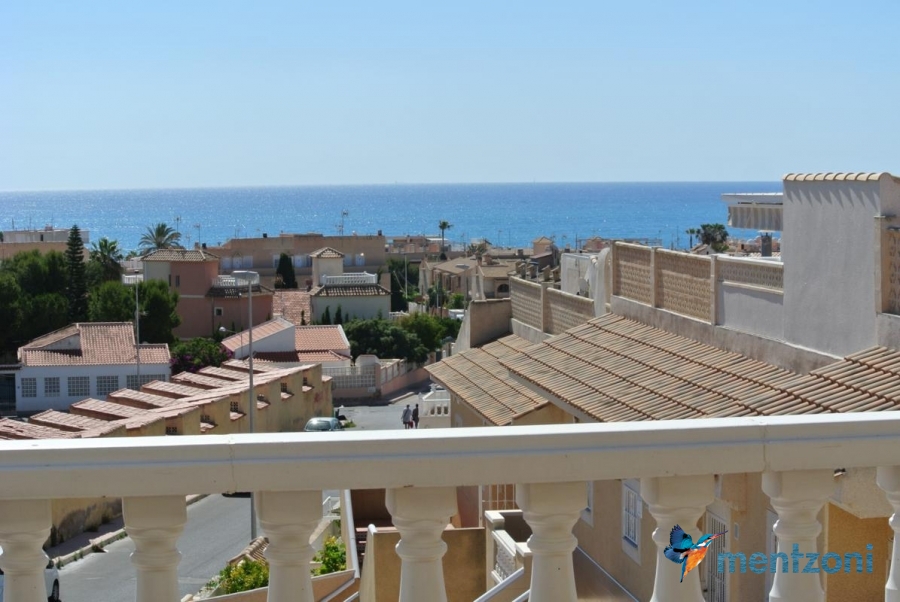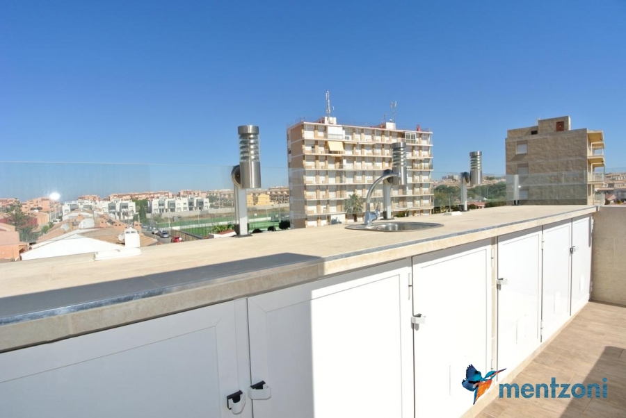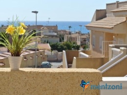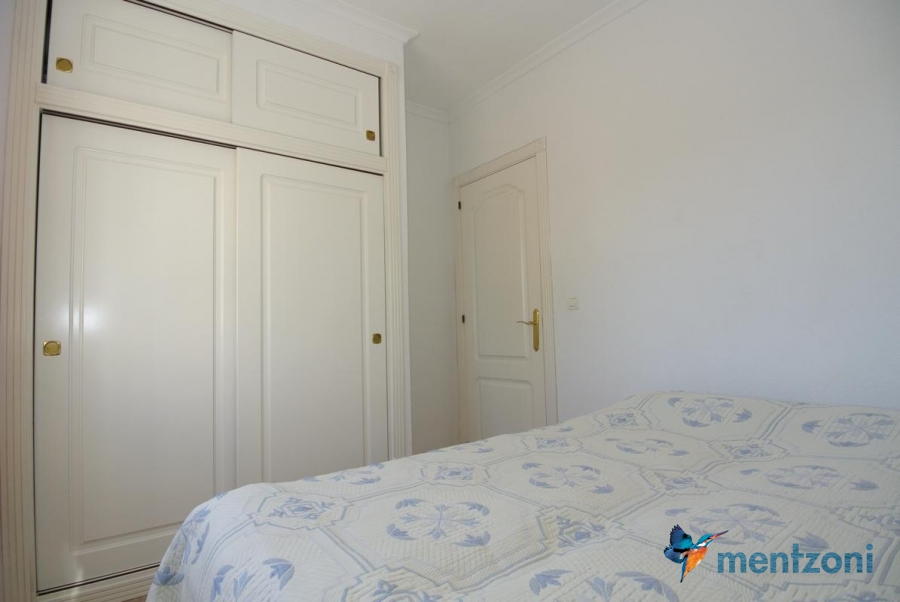 Unique top floor duplex type house with 3 large bedrooms, large living room, separate kitchen, 2 bathrooms, 3 terraces and the magnificent solarium of about 20 m2 with beautiful sea views. Apartment in excellent condition with some refurbishment inside and on the terrace and solarium. Outdoor kitchen also on the roofterrace. Residential with communal pool with amenities very close and the beach less than 350m away.