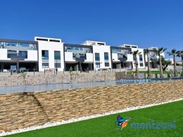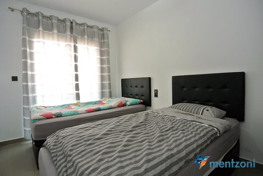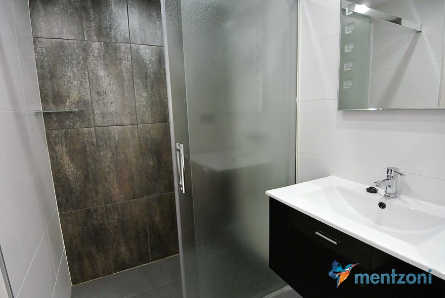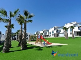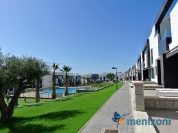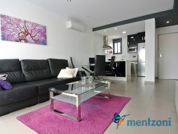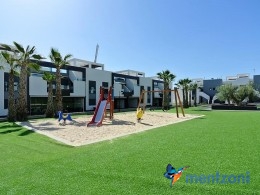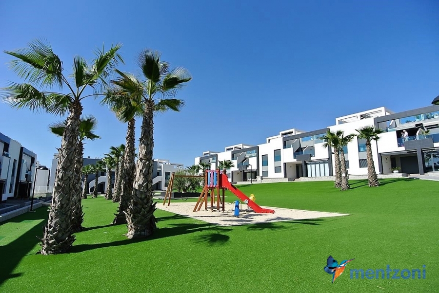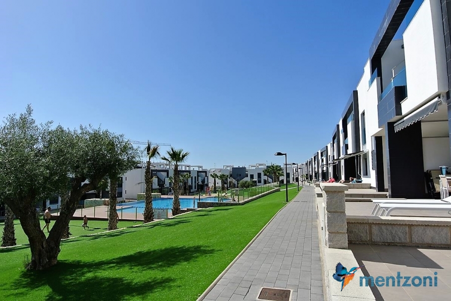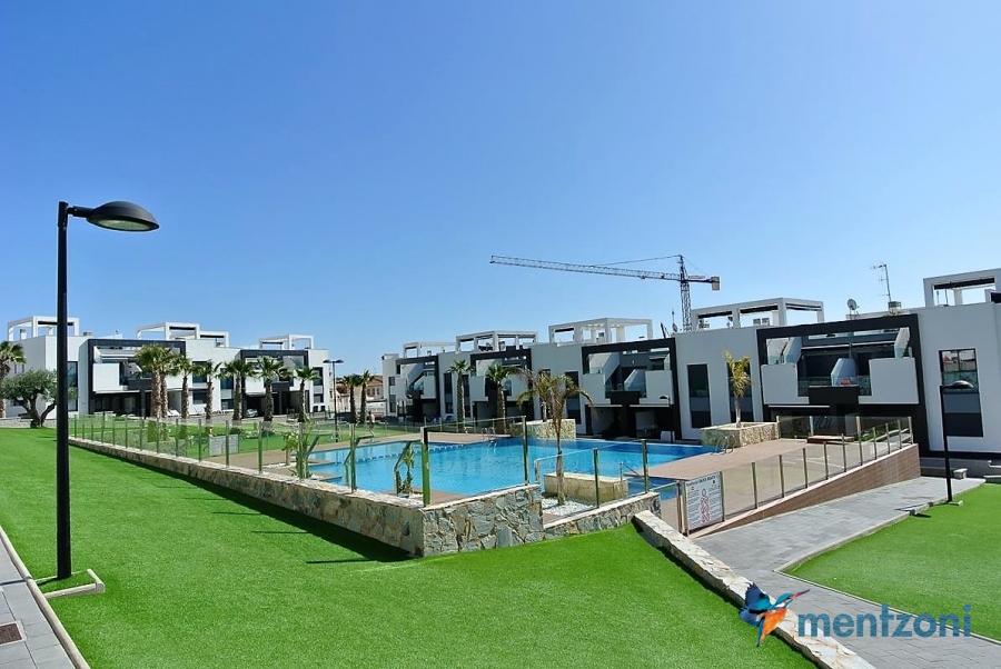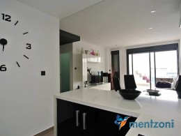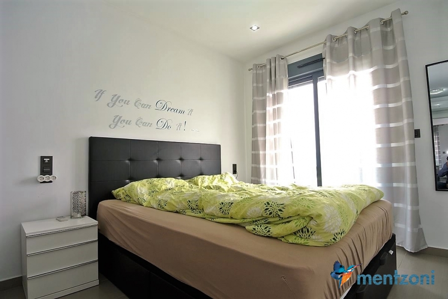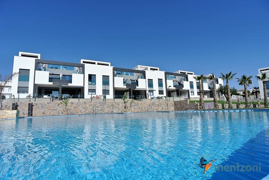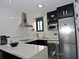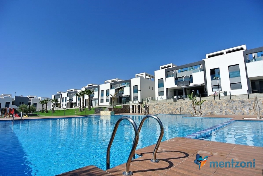 Fantastic top floor bungalow with 2 bedroom, 2 bathrooms( 1 en suite), large living room, kitchen, terrace with storage and a big sunny roof terrace with fantastic views. Apartment in perfect condition. AC in all rooms, underfloor heating in bath and living room. Parking space under the complex. Fantastic communal areas and large swimmingpool