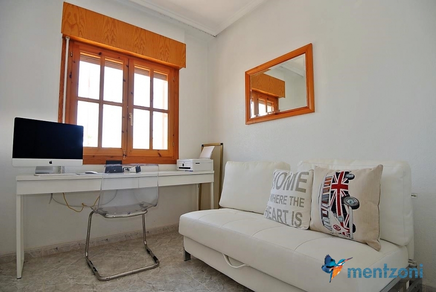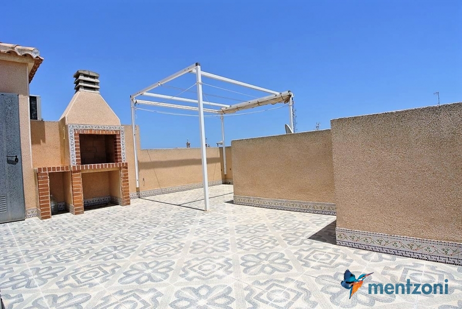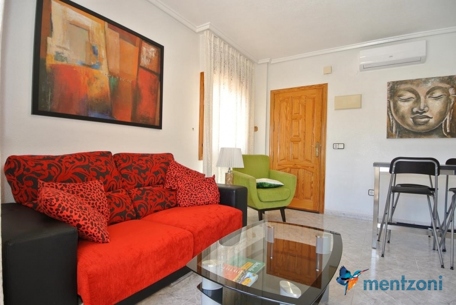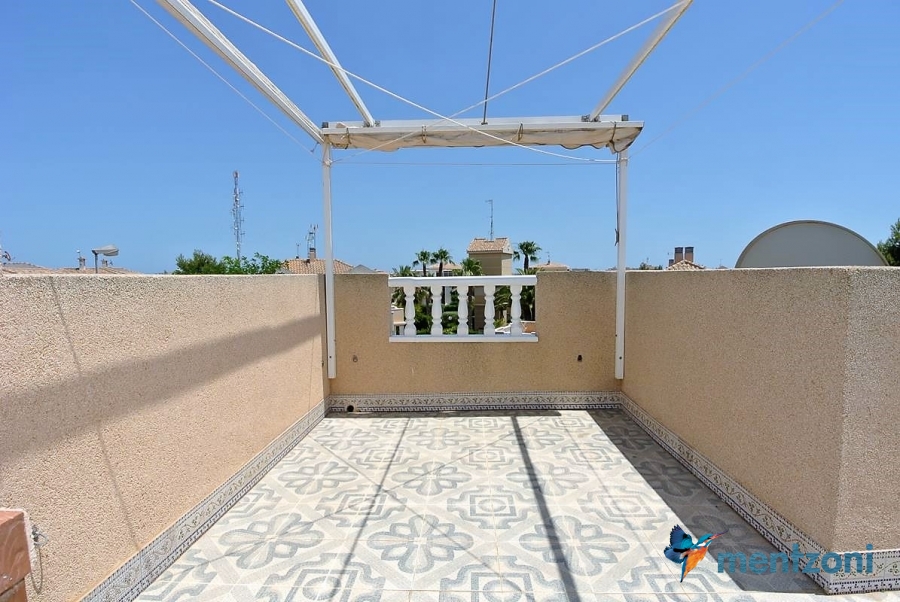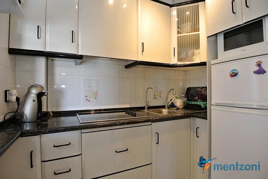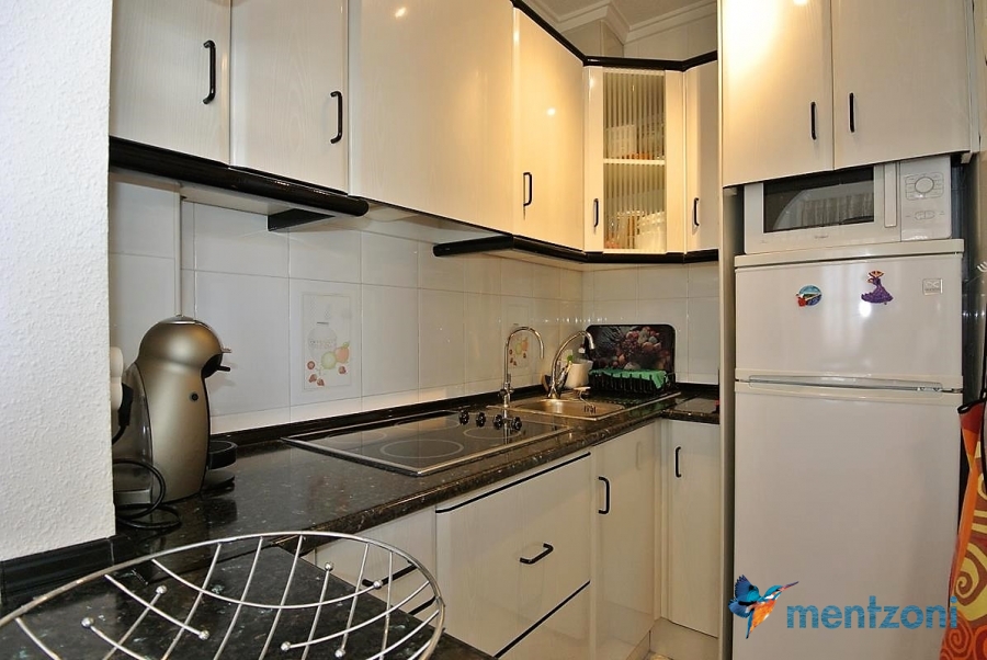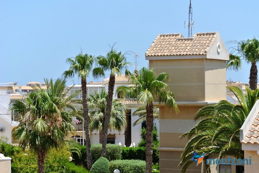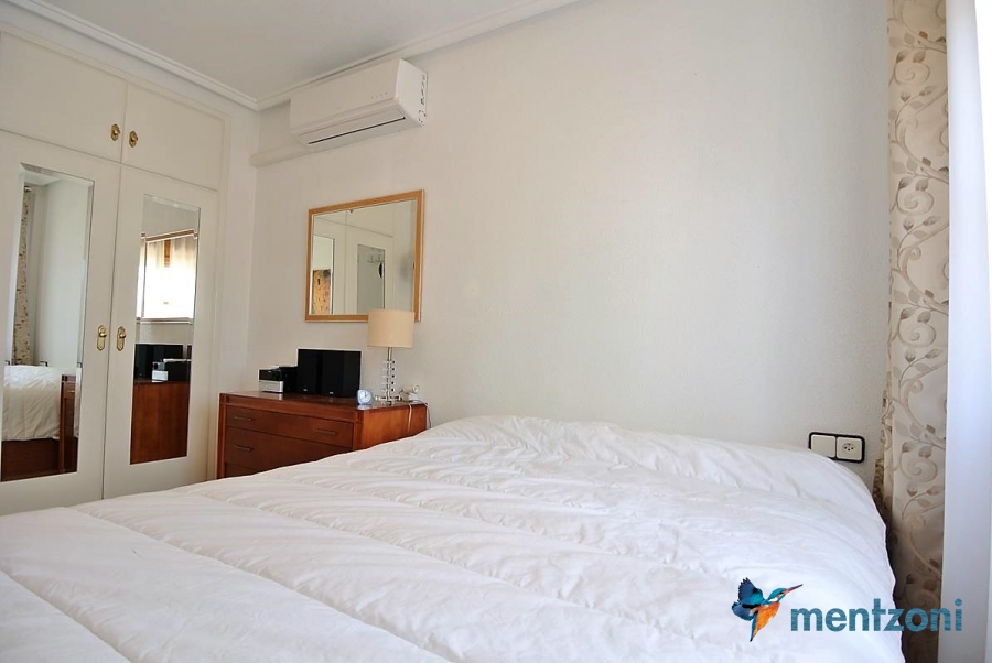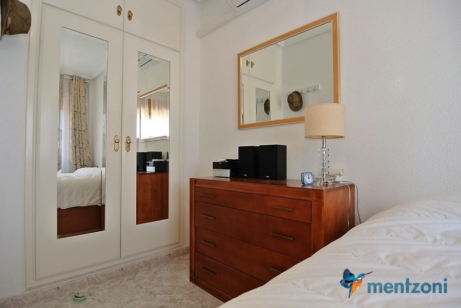 Top floor apartment with private roof terrace with sea views. Apartment with 2 bedrooms with wardrobes, bathroom, open concept kitchen, living room with electric blinds and a sunny terrace with views to the residential complex. Laundry room and storage on the roof terrace. Residential with communal pool and garden. Shopping center with supermarket in walking distance. The beach under 1,2 km.