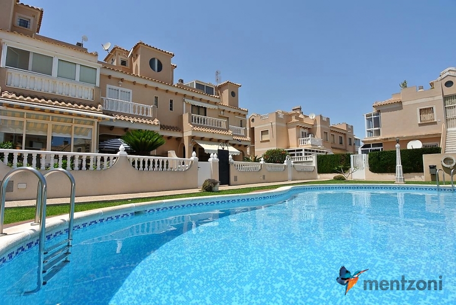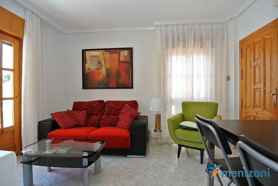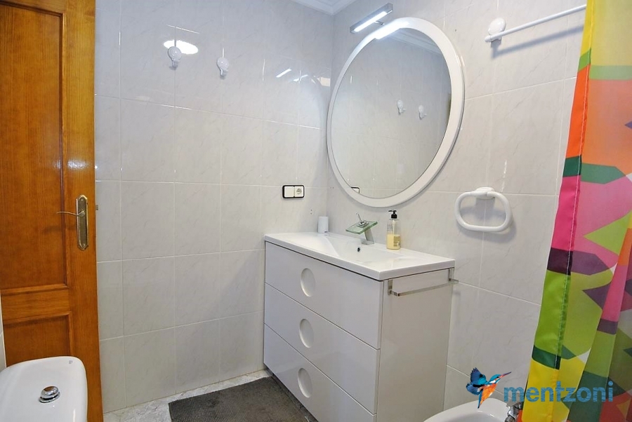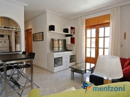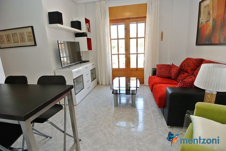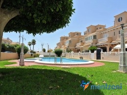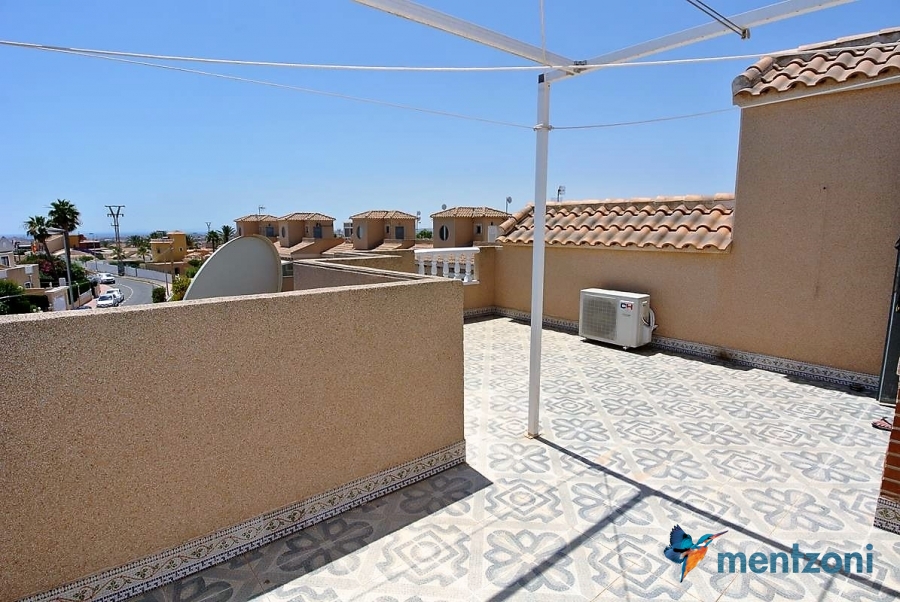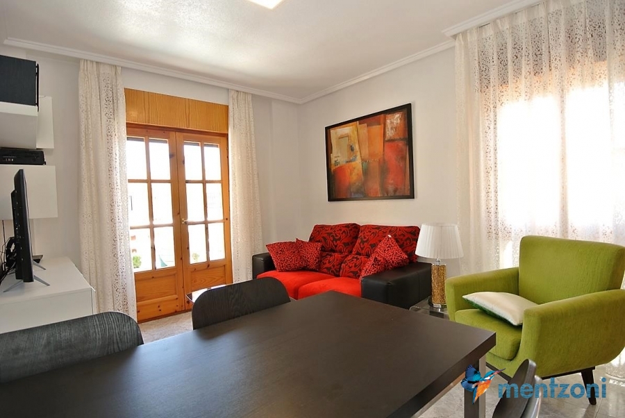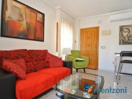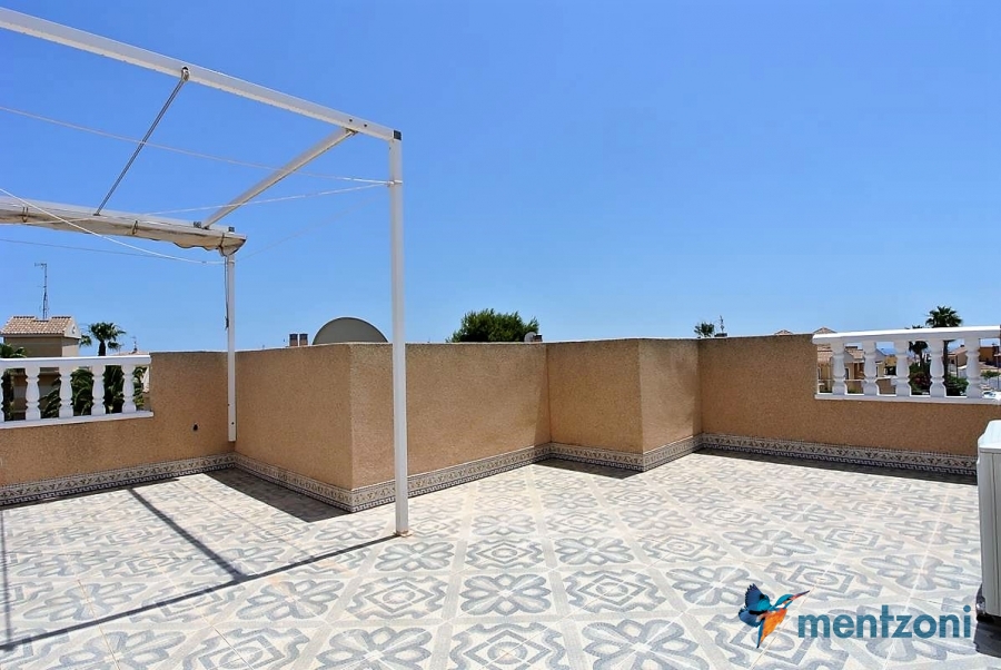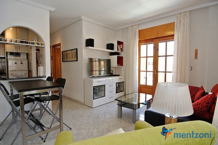 Top floor apartment with private roof terrace with sea views. Apartment with 2 bedrooms with wardrobes, bathroom, open concept kitchen, living room with electric blinds and a sunny terrace with views to the residential complex. Laundry room and storage on the roof terrace. Residential with communal pool and garden. Shopping center with supermarket in walking distance. The beach under 1,2 km.