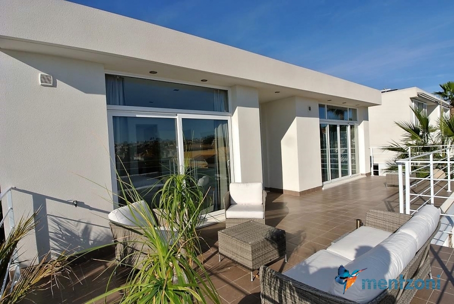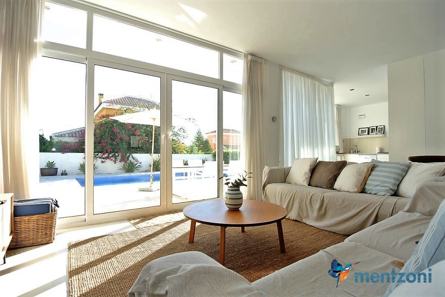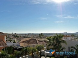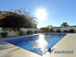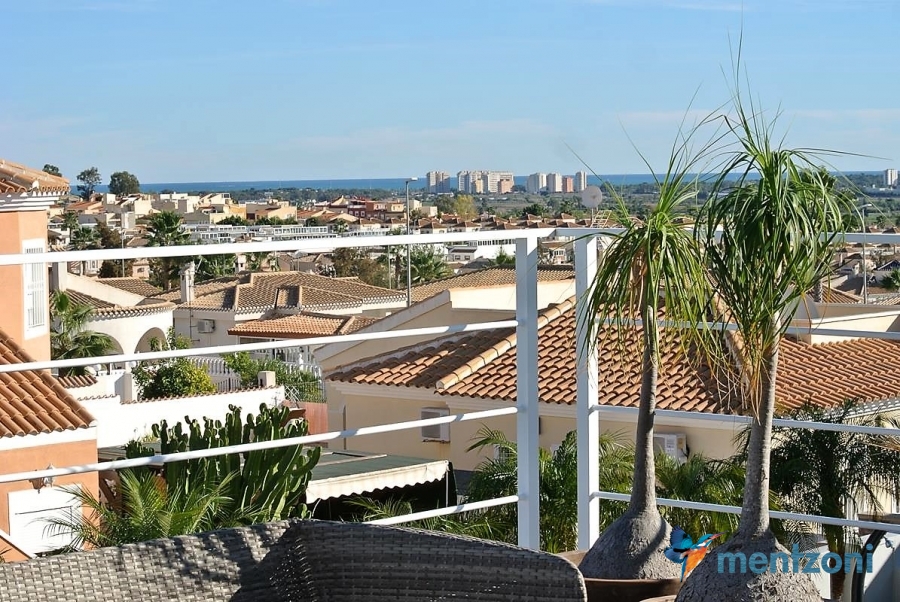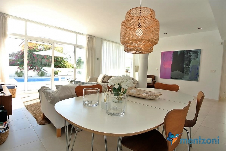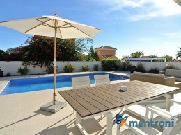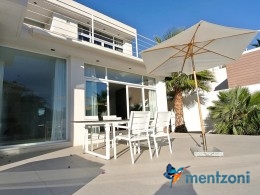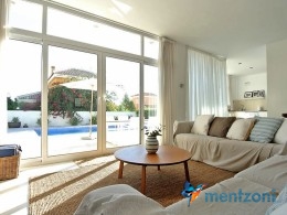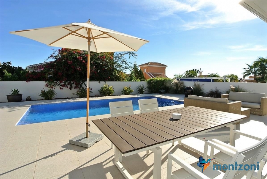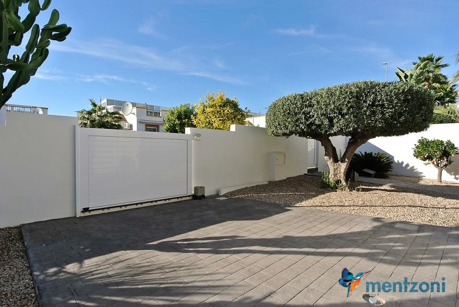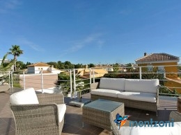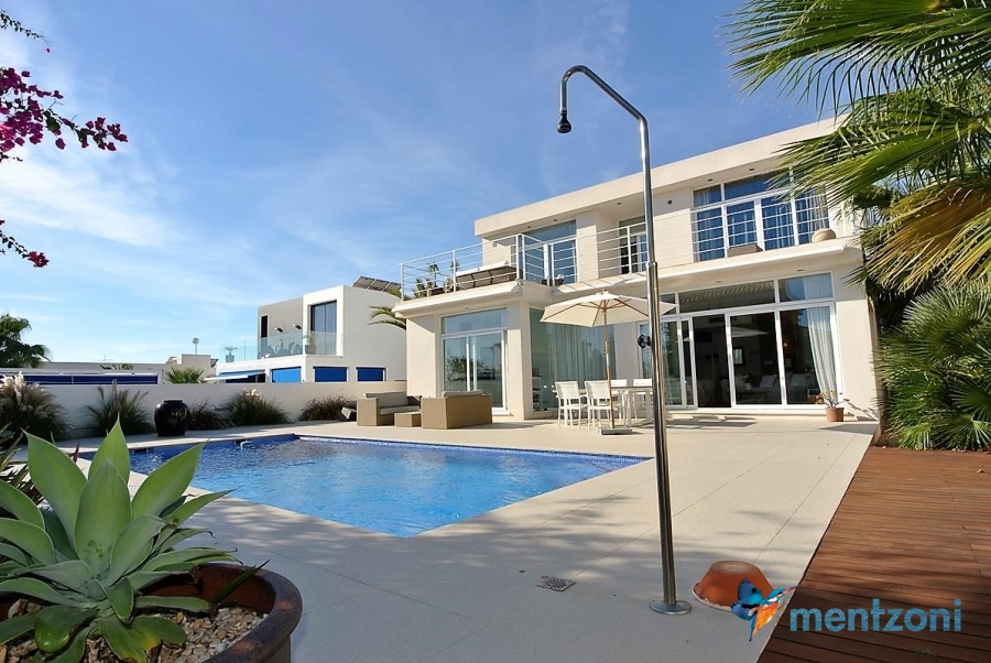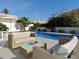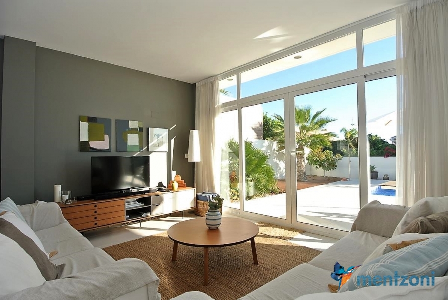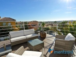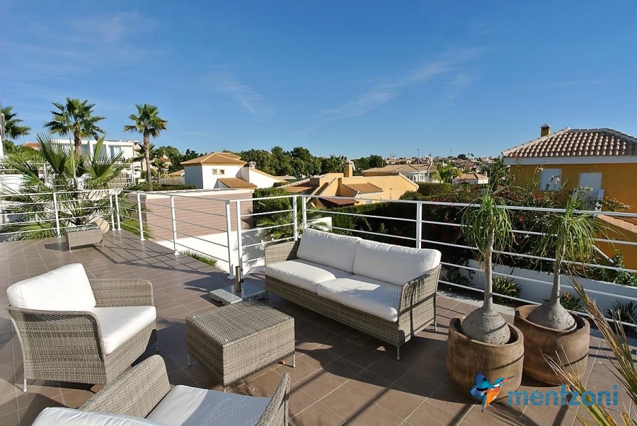 A beautiful villa on 2 floors located in the nice urb. La Marina. This house is built on 500 m2 landscaped plot. Here you have your own private oasis with a 32 m2 pool with chill out zones and sun beds around. On the backside of the house facing the street you have a nice tiled space to enjoy the evening sun in your favourite chair with a good book and something refreshing in the glass surrounded with a very nice Olive tree and plants- heavenly!!