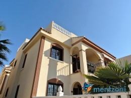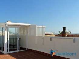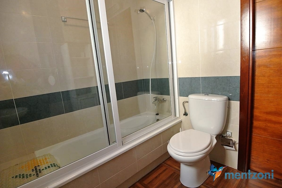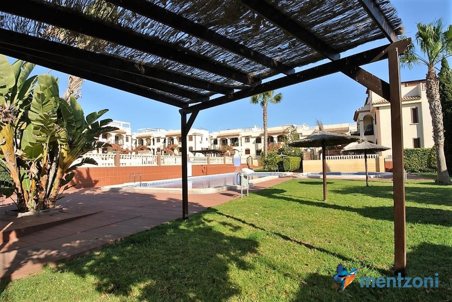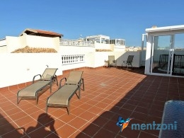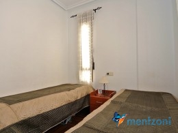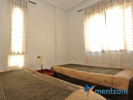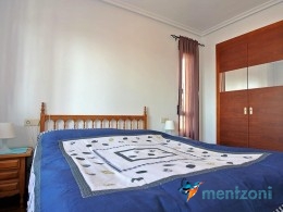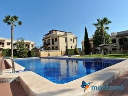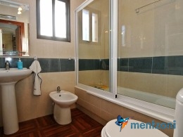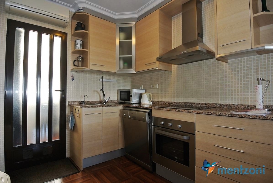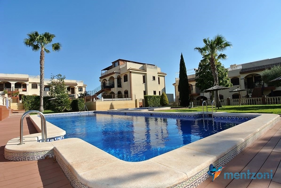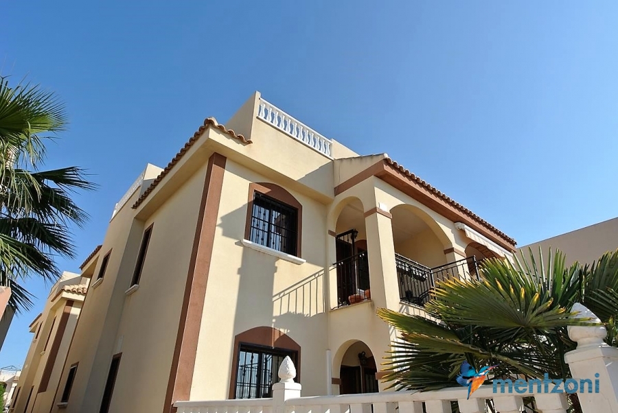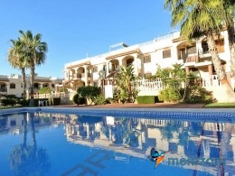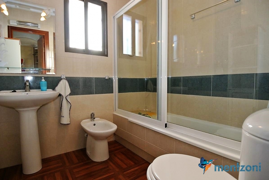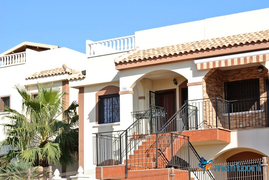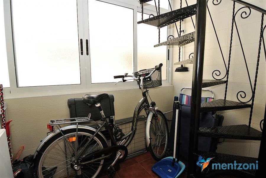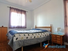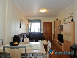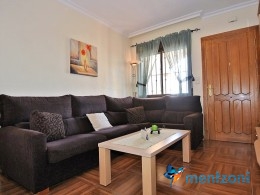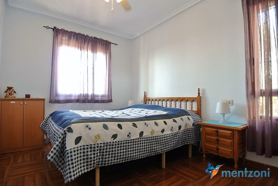 Upstairs apartment with living room/dining room, open kitchen, covered terrace outside living room, 2 bedrooms with built in wardrobes, 1 bathroom, and a big private roof terrace with views. Located inside the fantastic res complex Arcos Mediterráneo with nice communal areas and parking. Walking distance to amenities and the beach only 5 min away with car. AC, funrished. In very nice condition- move in ready.