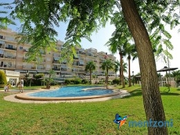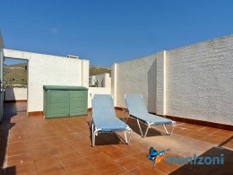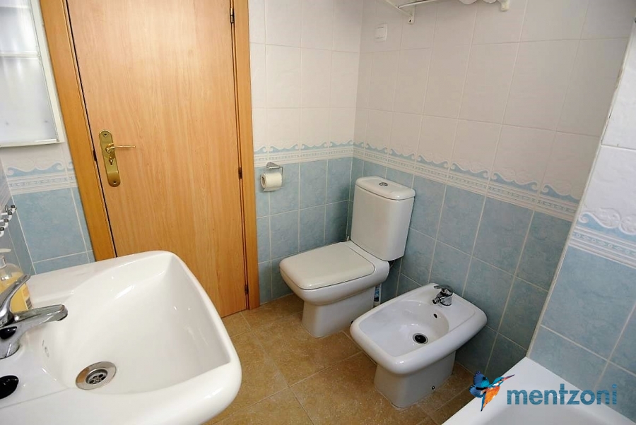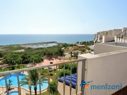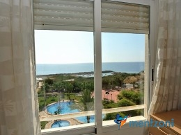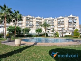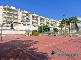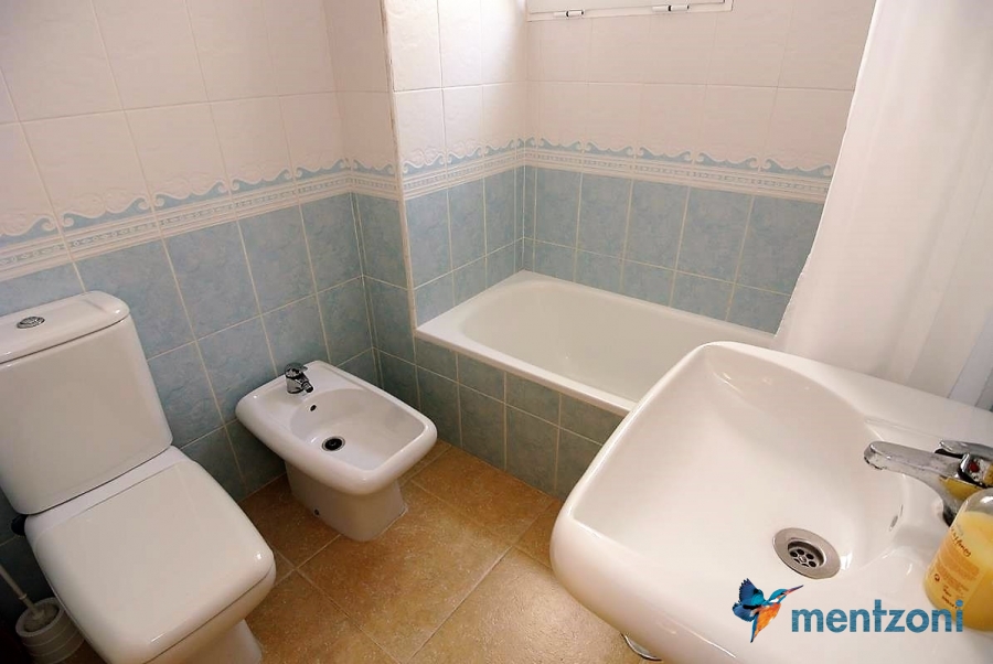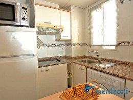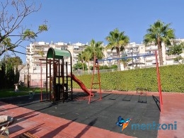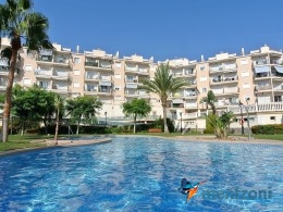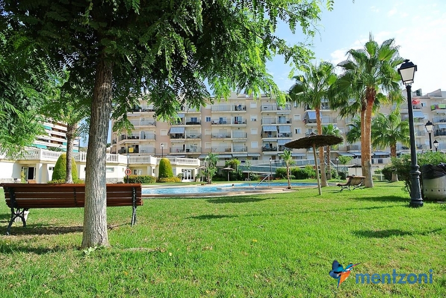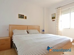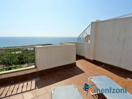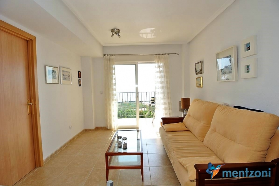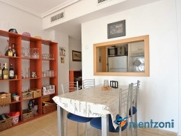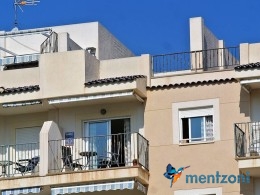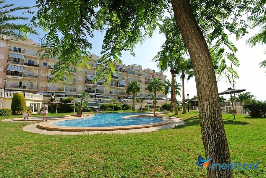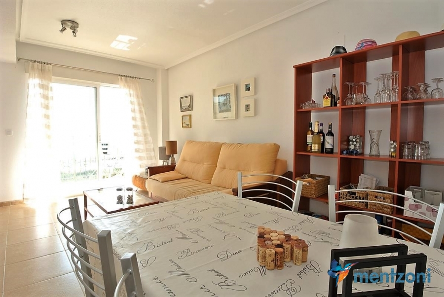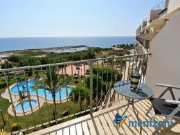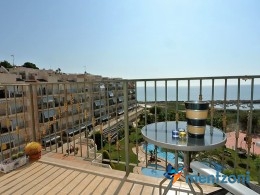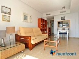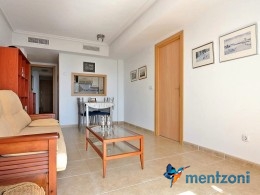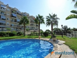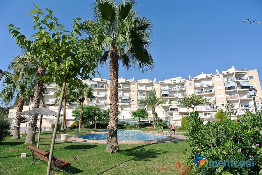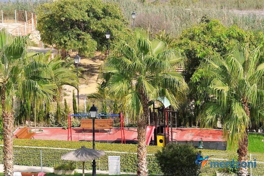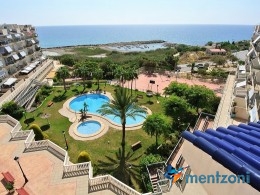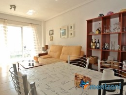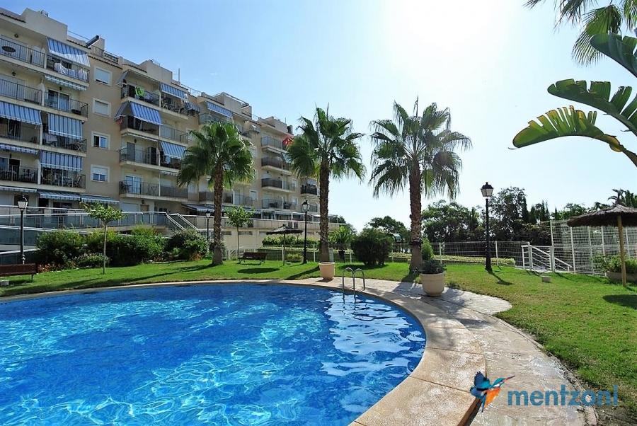 Fantastic property- top floor apartment with private roof terrace with panoramic views to the Mediterranean. Consists of 2 bedrooms, 1 bathroom, living room, kitchen and a balcony with excellent views to the complex and sea. This complex is located in first line, with fantastic communal green areas with salt water filtered pool, fitnes/gym, fotball, tennis, and basket and a small marina and private beach called- Venta Lanuza. walking distance to amenities, bus line and train to Alicante or direction north. Benidorm is just a few minutes away.