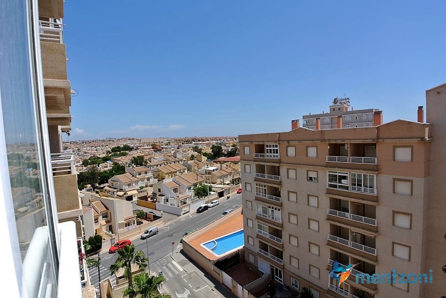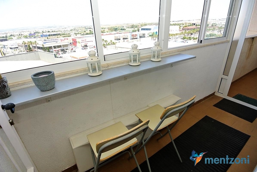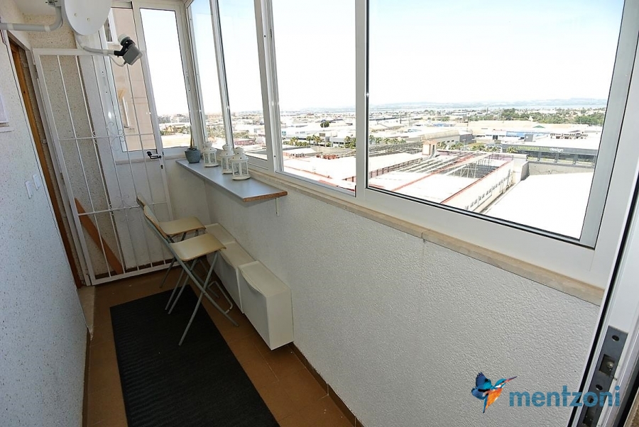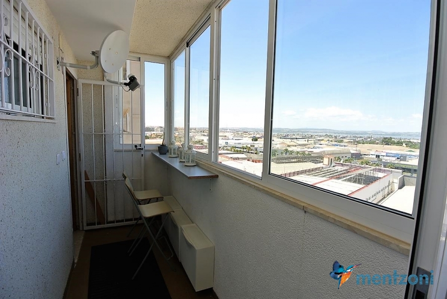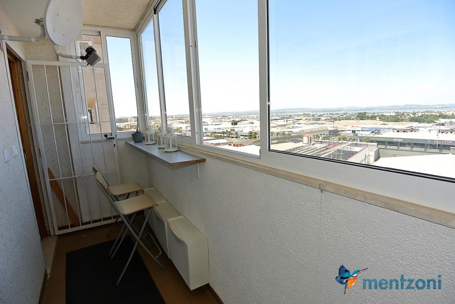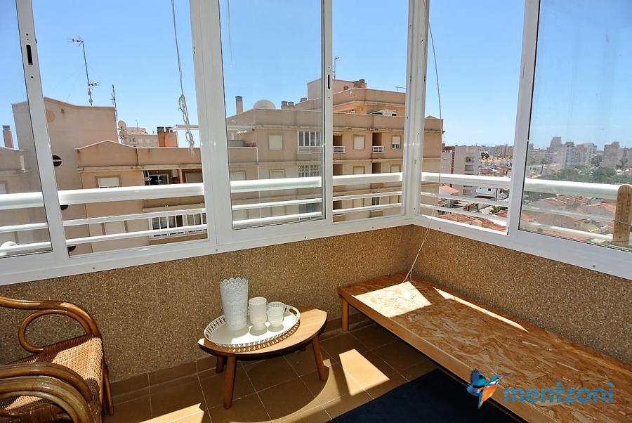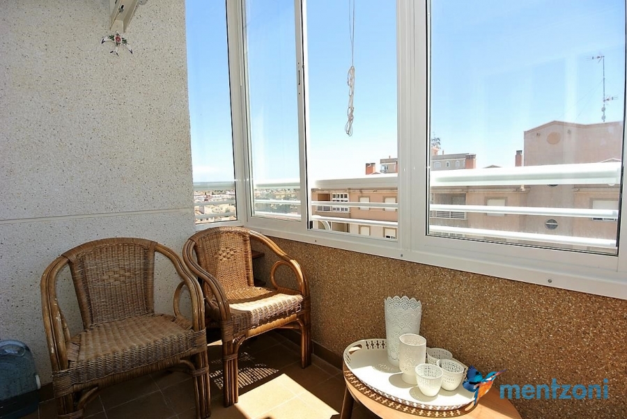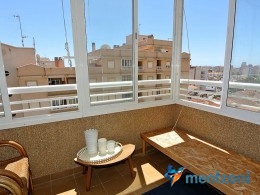 Apartment on the 8´th floor with 2 bedrooms, bathrooms, kitchen and living room. Glazed in terrace with views. In great condition, furniture and storage included. Near centre of Torrevieja and the beach only 1,6 km away.