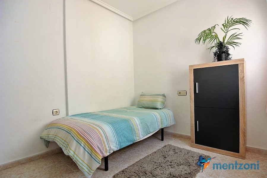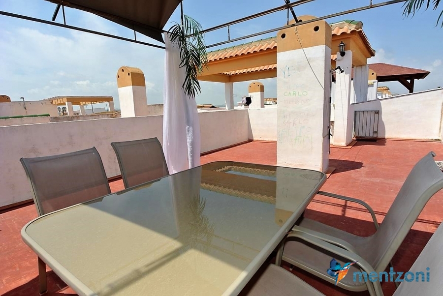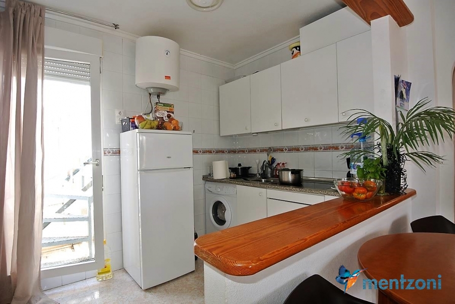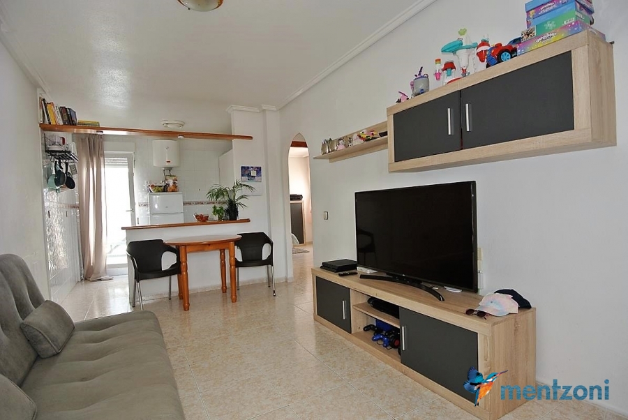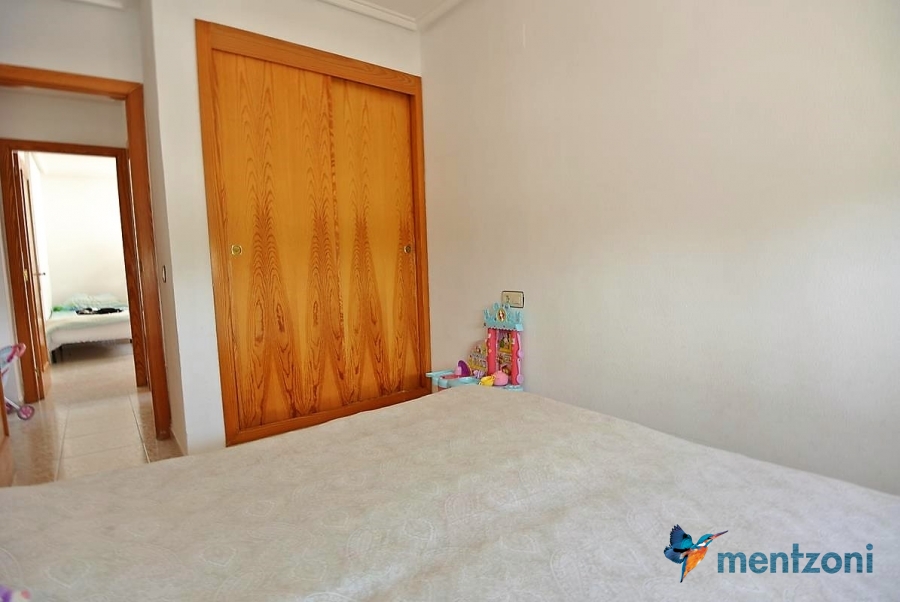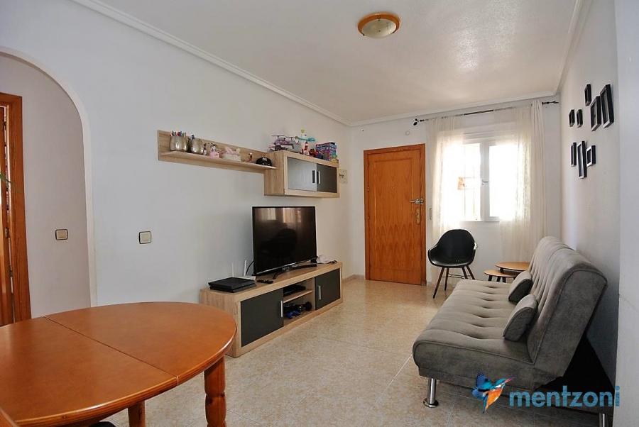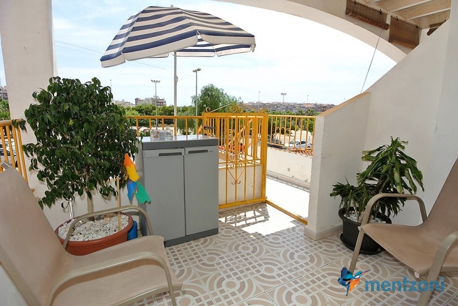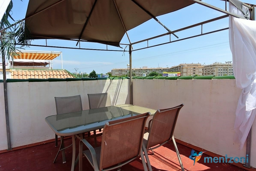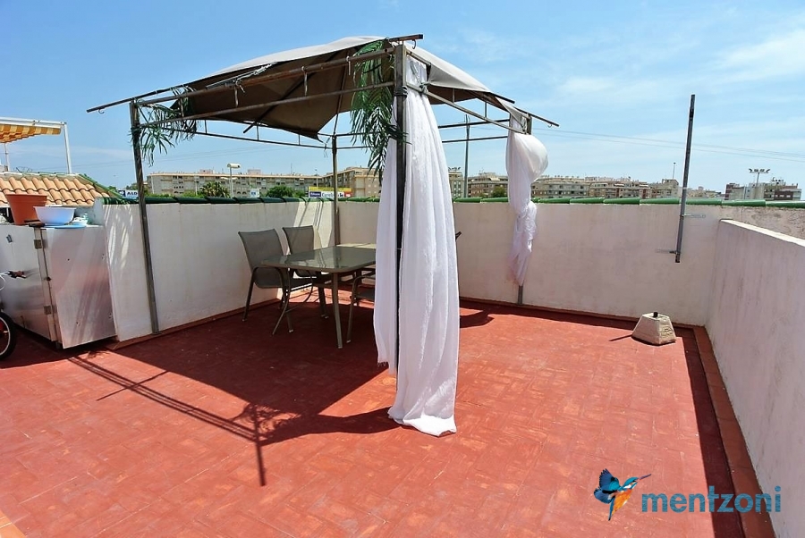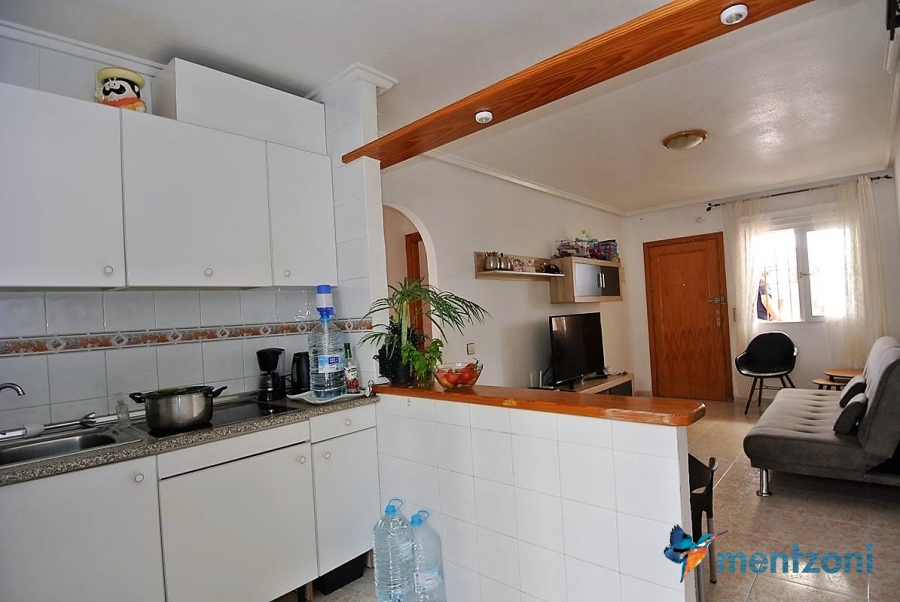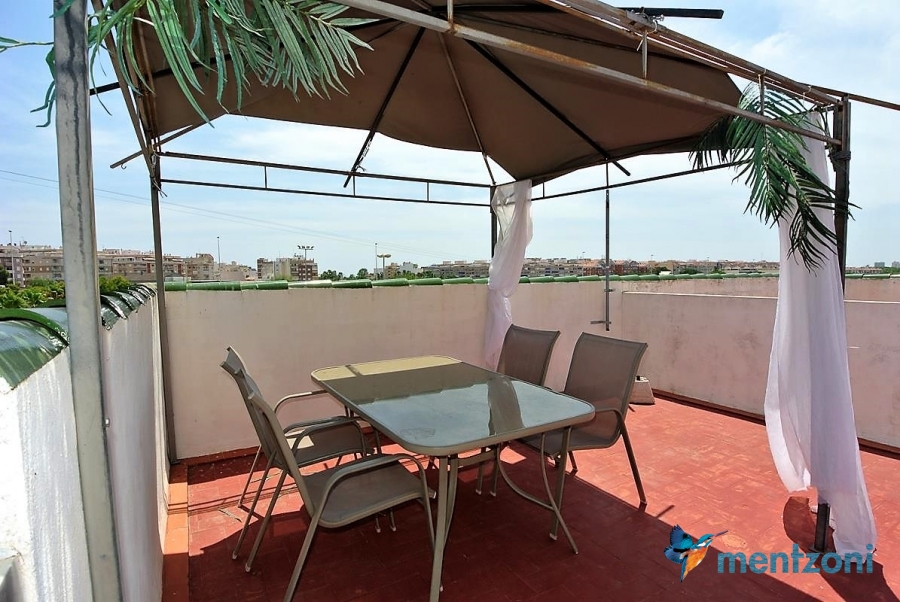Nice top floor apartment with private roof terrace, 2 berooms, 1 bathroom, kitchen, living room, and terrace by the entrance. The complex have fantastic communal areas with swimming pool, sports courts and parking. Torrevieja center and the beach nearby.