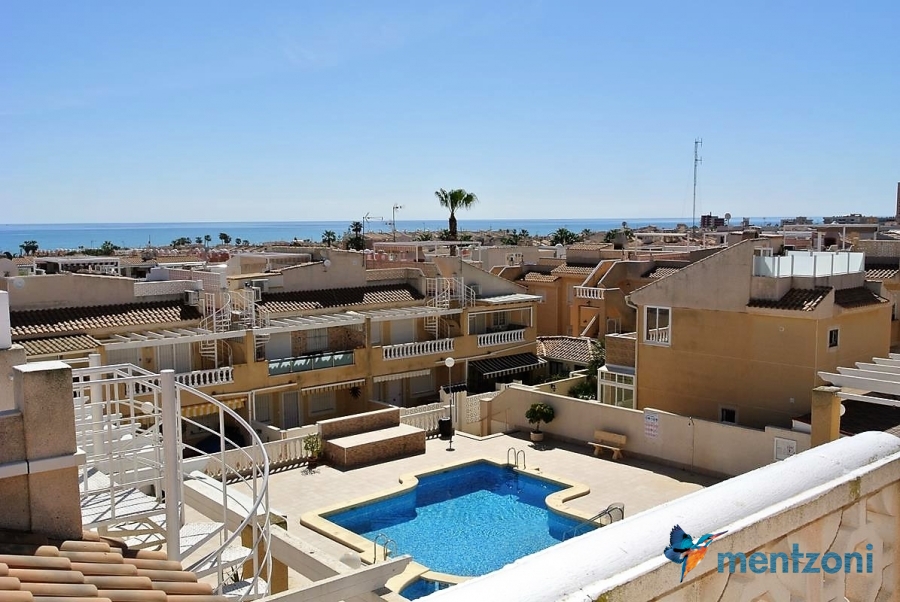 Fantastic top floor apartment with 2 bedrooms, bathroom, living room, kitchen, nice terrace on main floor with views to the communal swimming pool, private roof terrace with exceptional views to the sea. In very good condition and sold furnished. A very nice communal pool area and amenities in walking distance and of course to the sea also.