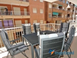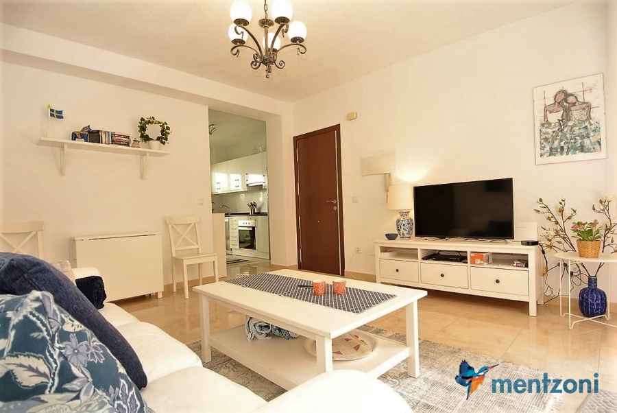 Consists of 3 bedrooms, 1 bathroom, kitchen, laundry room/storage, living room with direct access to a nice terrace with sea views. Totally reformed in 2017- amazing apartment. AC, parking in open parking floor -ground level. 70 m from the beach and all amenities in walking distance.