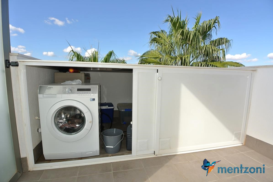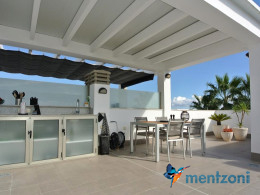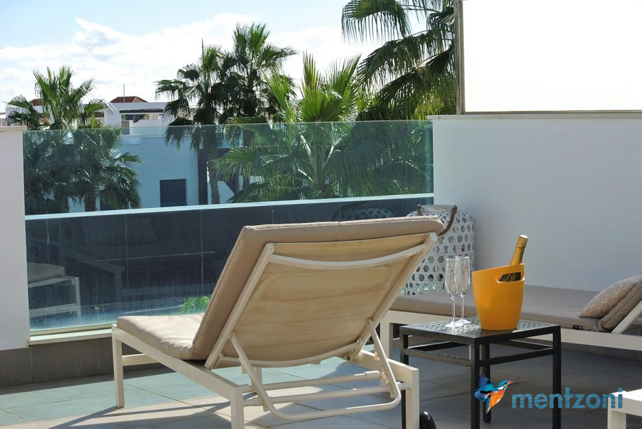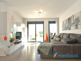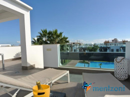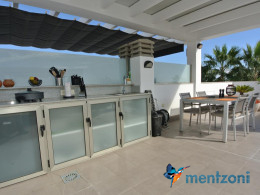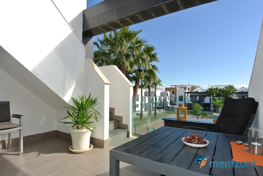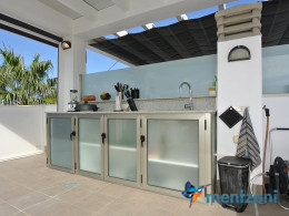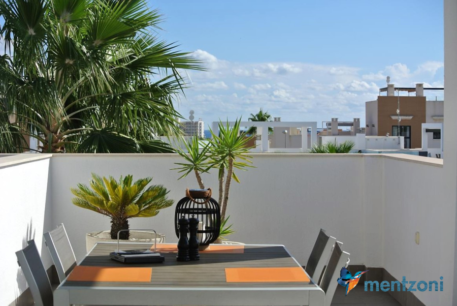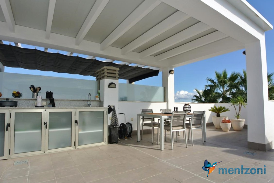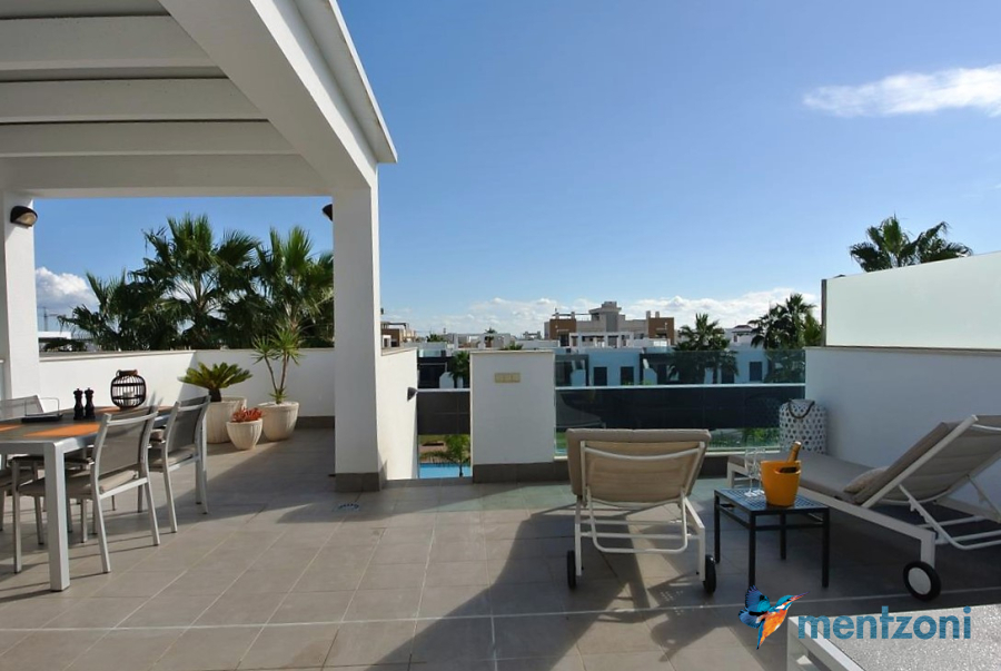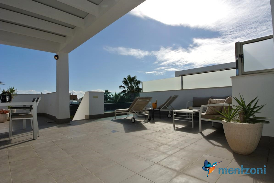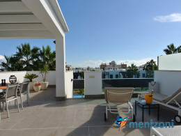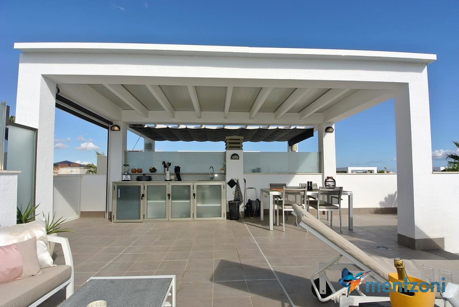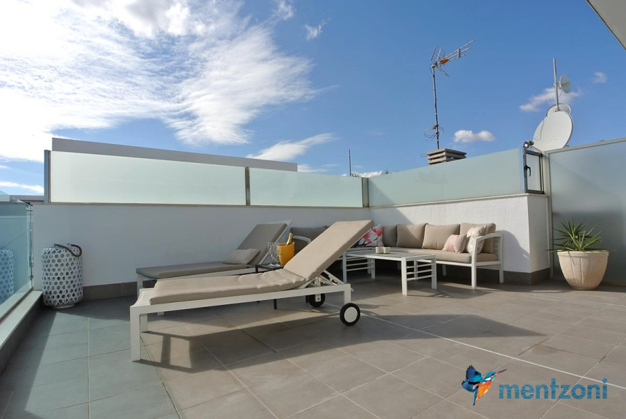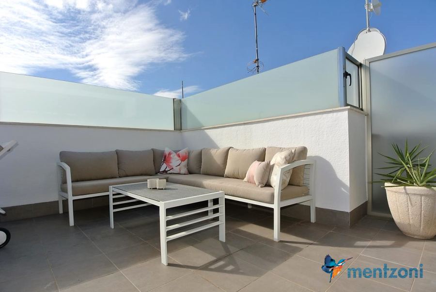 Consists of 2 bedrooms, 2 bathrooms ( 1 en suite), åpen concept kitchen, living room with direct access to a cozy terrace with views to communal areas, from here a staircase up the 55 m2 private roof terrace with sea views, her you have a covered shower, outside kitchen, sitting group, and covered eating area. Underfloor heating and AC in all rooms, upgraded whitegoods (Siemens). A modern apartment in good condition. ocated inside a very nice complex with great children friendly communal ares, Jacuzzi, and parking space in the basement. Located very near the famous CC La Zenia Boulevard. All amenities in walking distance. Beaches nearby.