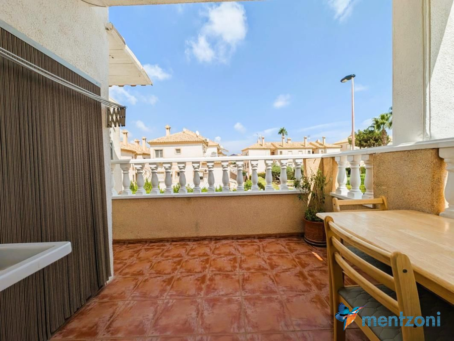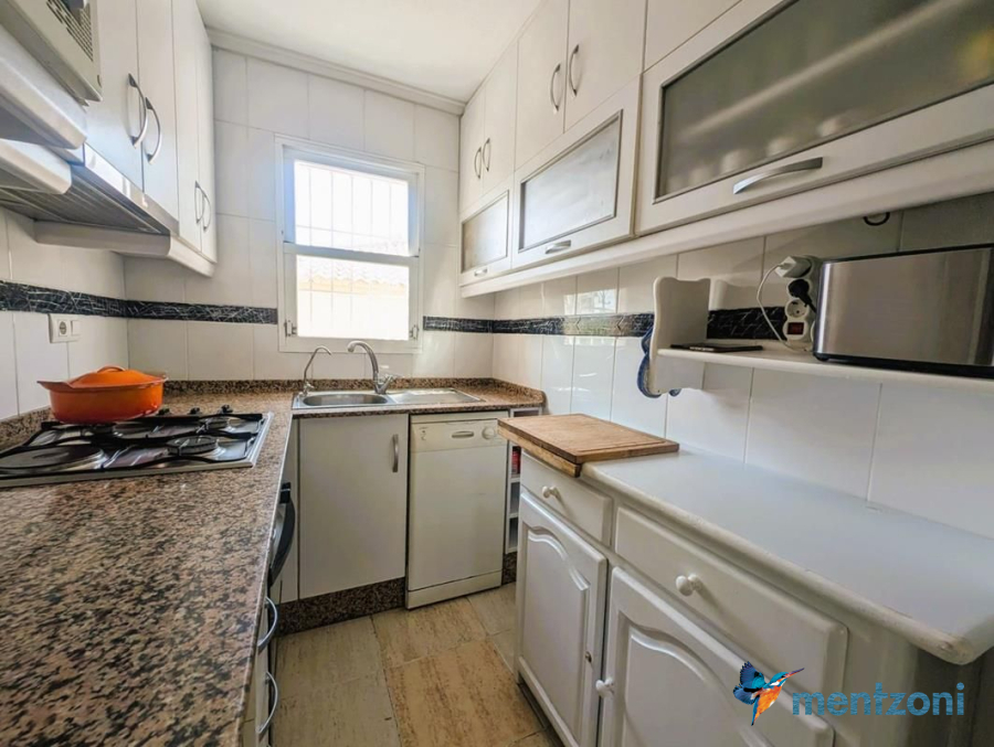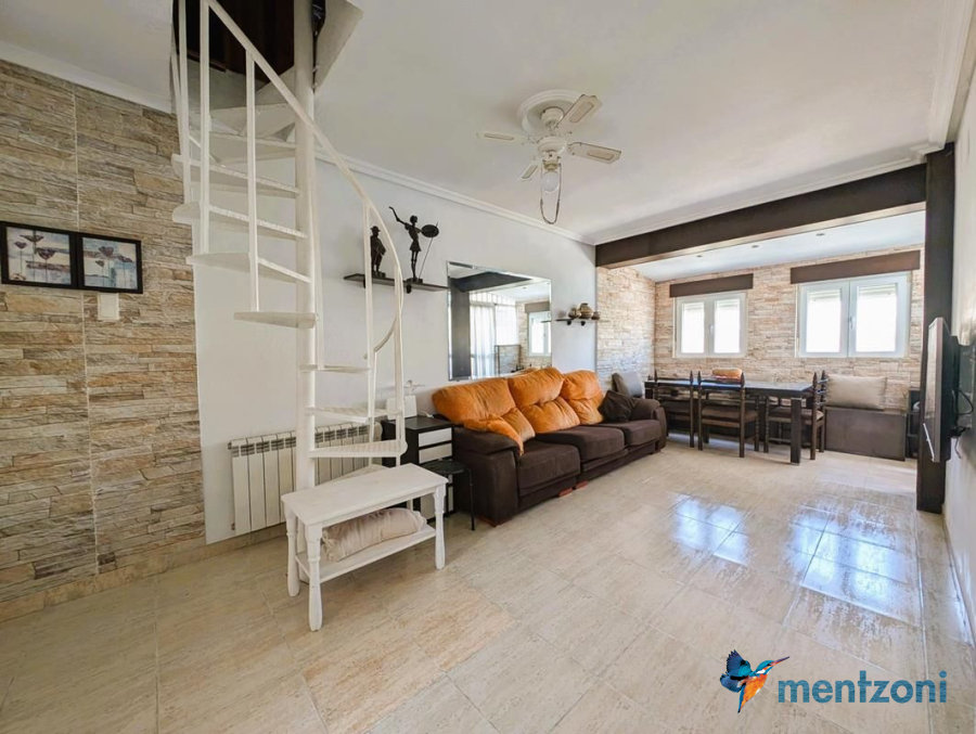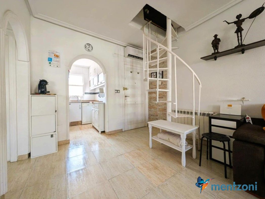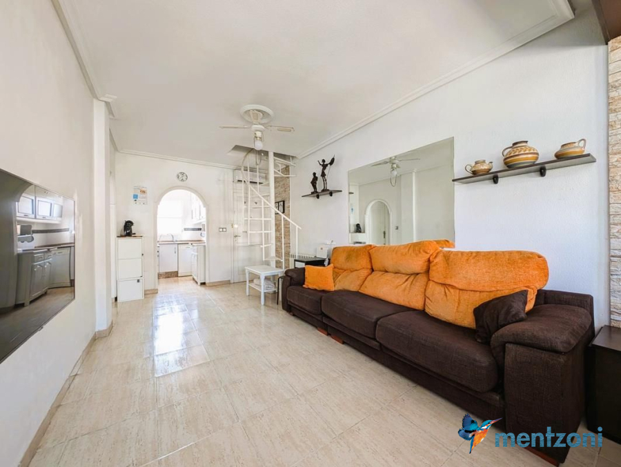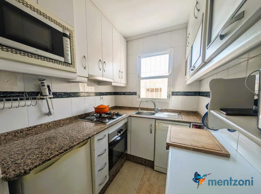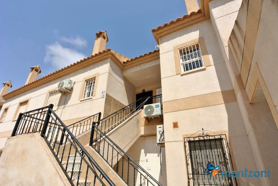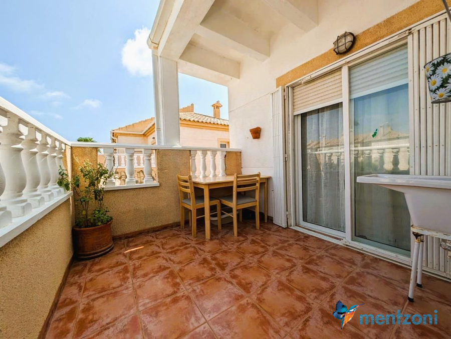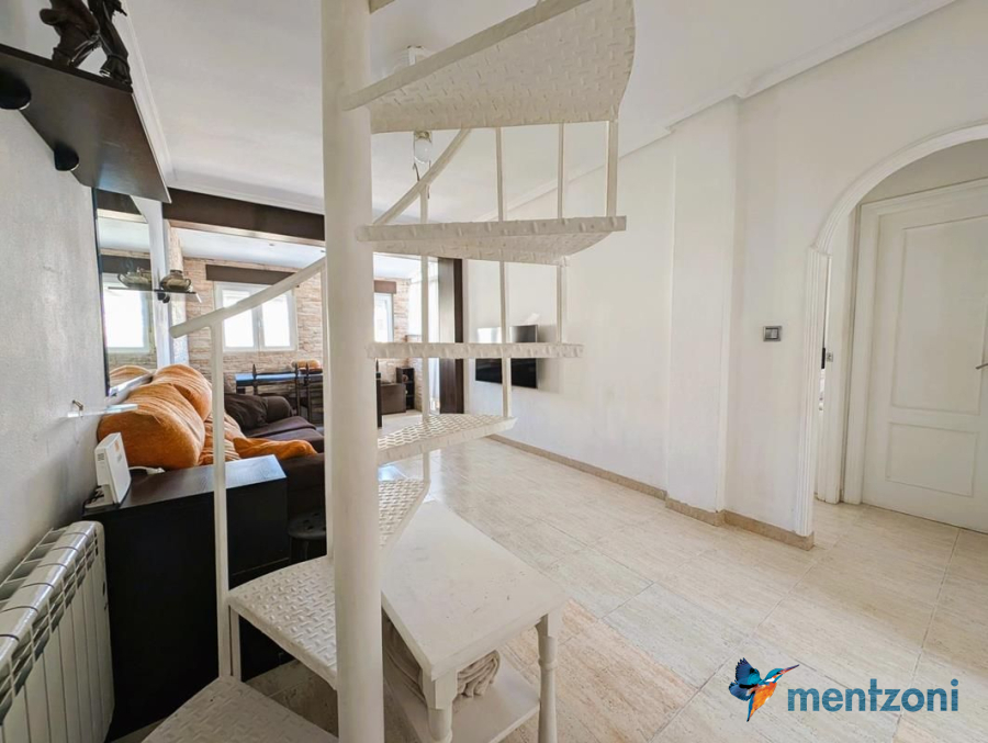 Consists of livingroom/dining with access to a terrace, separated kitchen, 2 bedrooms, bathroom, and storage on the attic. The upstair apartment is located inside residential Margarita II on Aguas Nuevas with parking and communal pool.