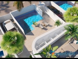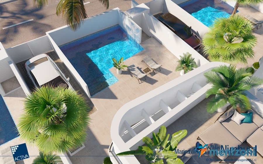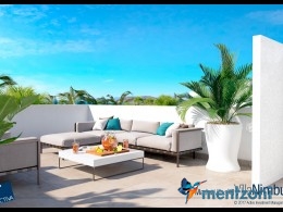 On ground floor we have a guest bath and guest bedroom with its own access to the terrace. A 36 m2 nice living room with open concept kitchen, wit space for dining table. There are big sliding windows out to the nice terrace area by your private pool. Also a private car park.